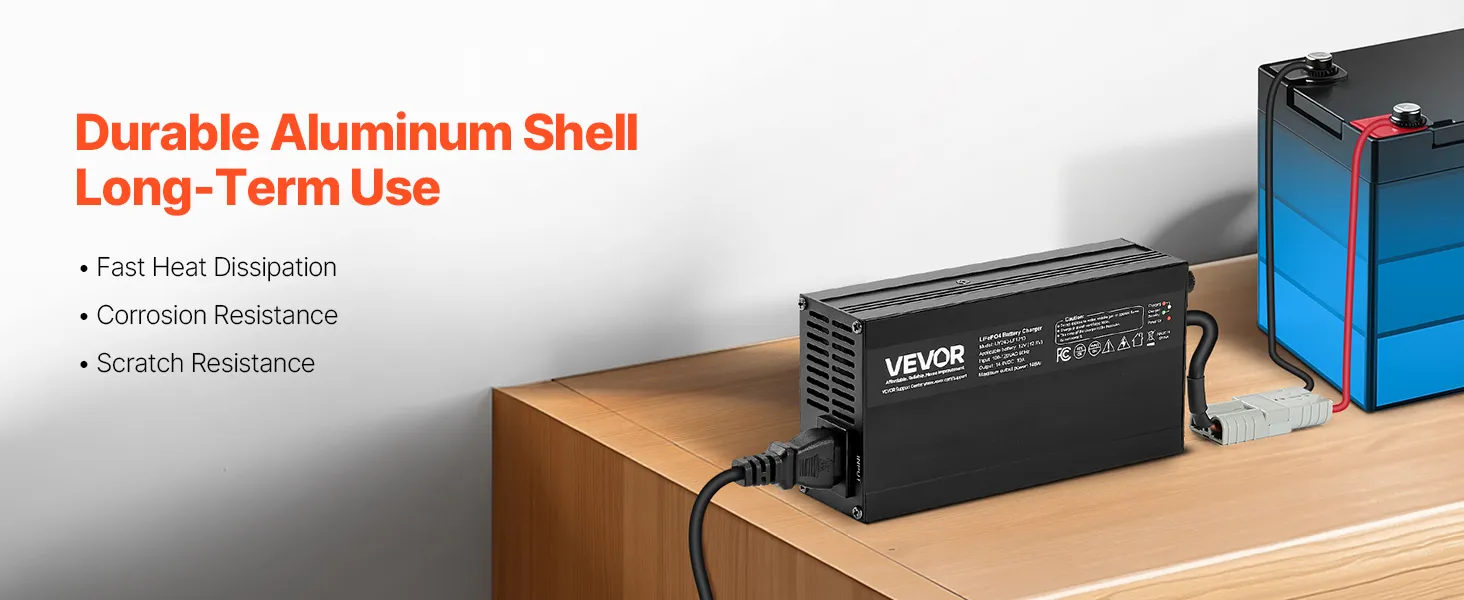 Designed for 12V LiFePO4 Batteries: This smart battery charger delivers a 14.6V DC charging voltage and 10A charging current. Fully charge a 50Ah battery in just 5 hours (Note: Not suitable for lead-acid batteries)