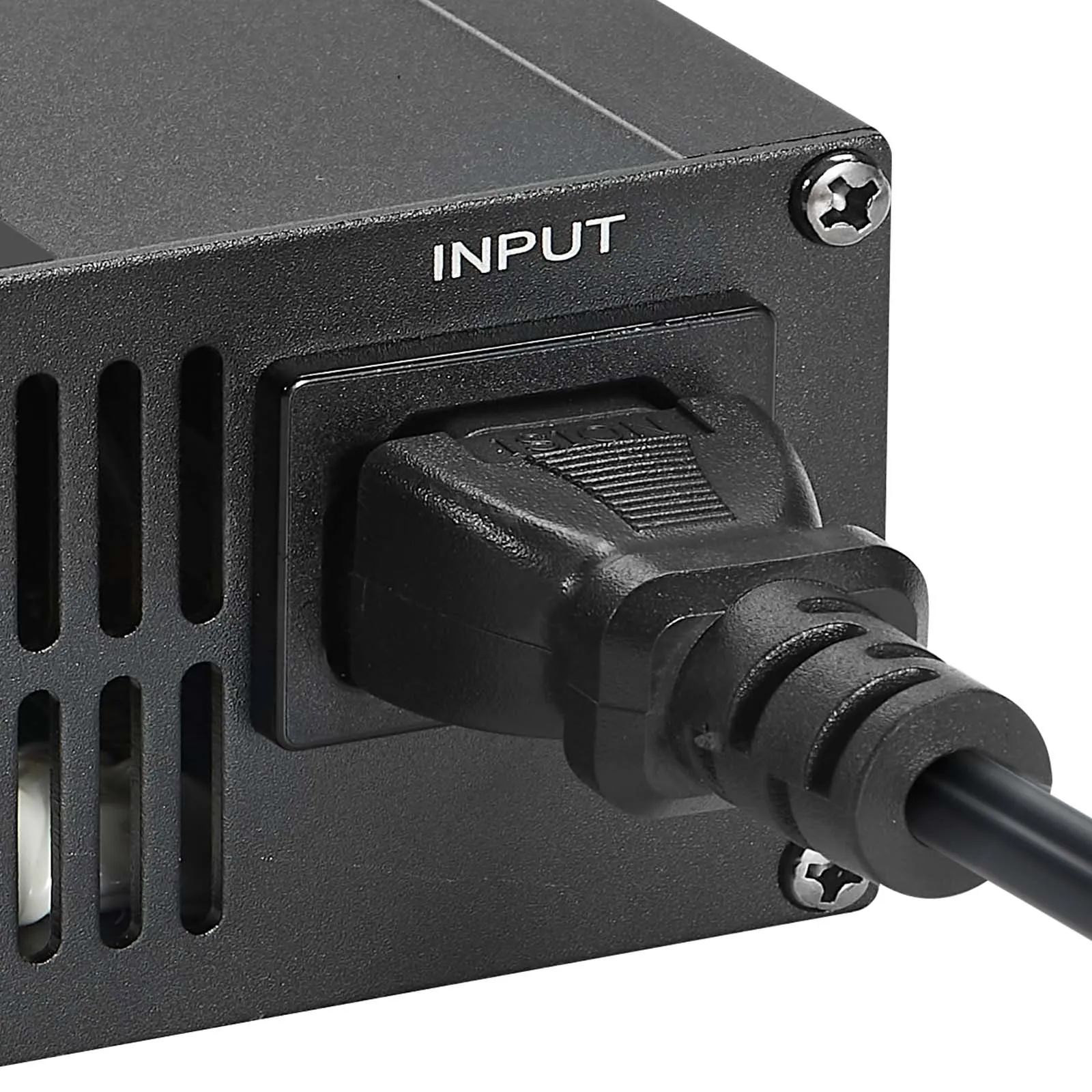 Our LiFePO4 smart charger comes with an AC input for secure connections during use.