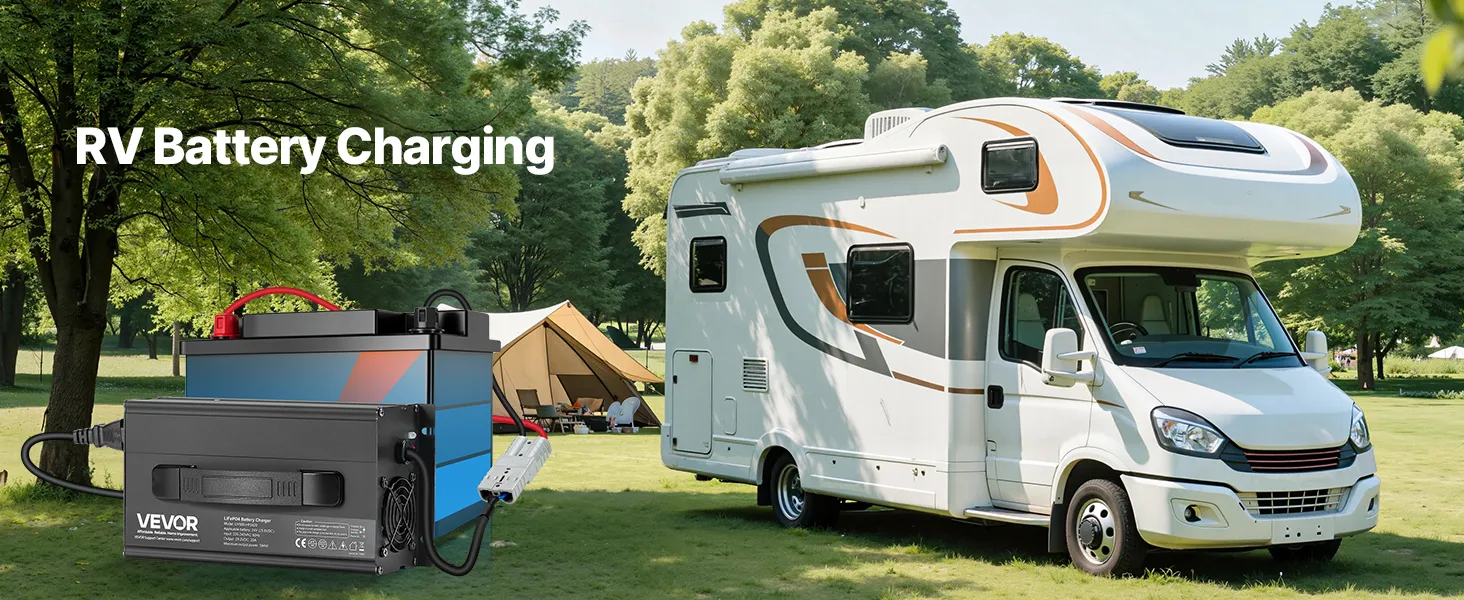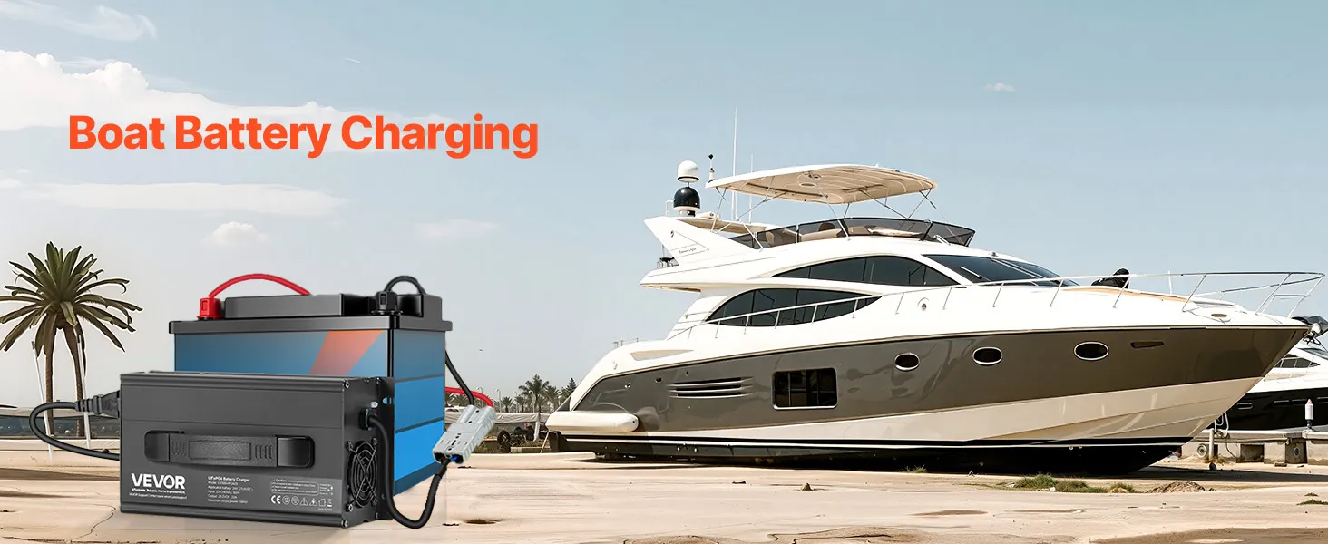 Upgraded Anderson Connector: The LiFePO4 smart charger comes with a 1.4 ft 50A Anderson-M8 terminal adapter cable for plug-and-play convenience. Ideal for RVs, boats, golf carts, solar systems, or any other lithium battery-powered equipment