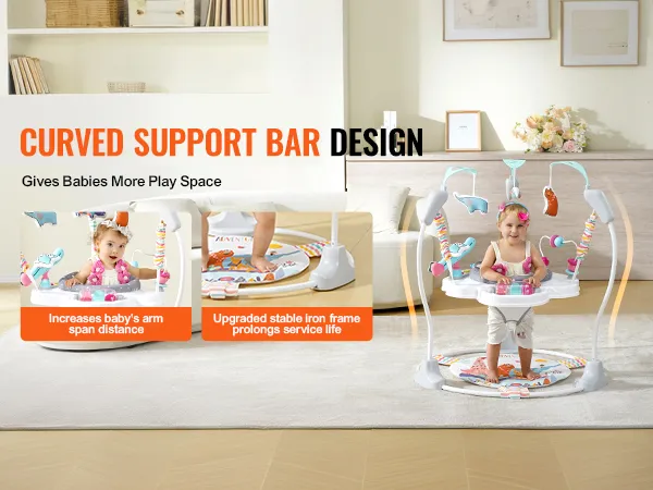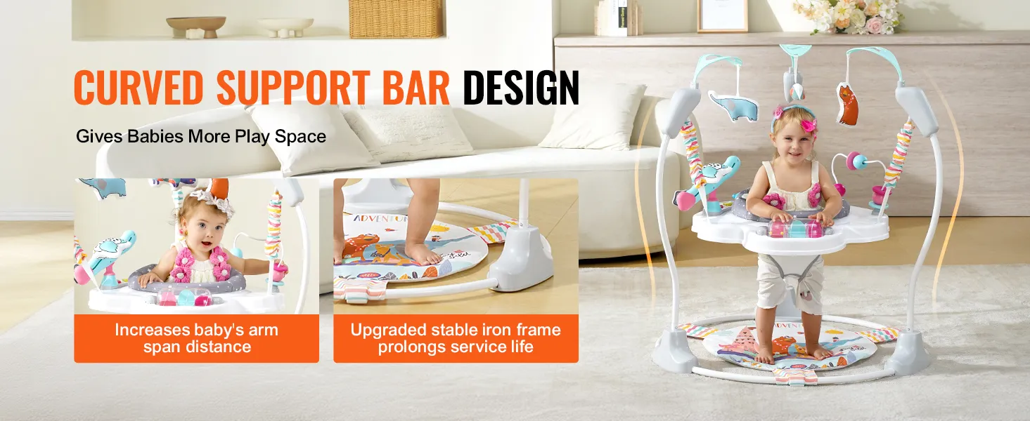 Het gebogen paalontwerp zorgt voor meer bewegingsvrijheid en de versterkte bodem zorgt voor stabiliteit. Dankzij zijn sterkere veerkracht is deze ruimtebesparende baby-jumperoo een slimme keuze voor moeders.