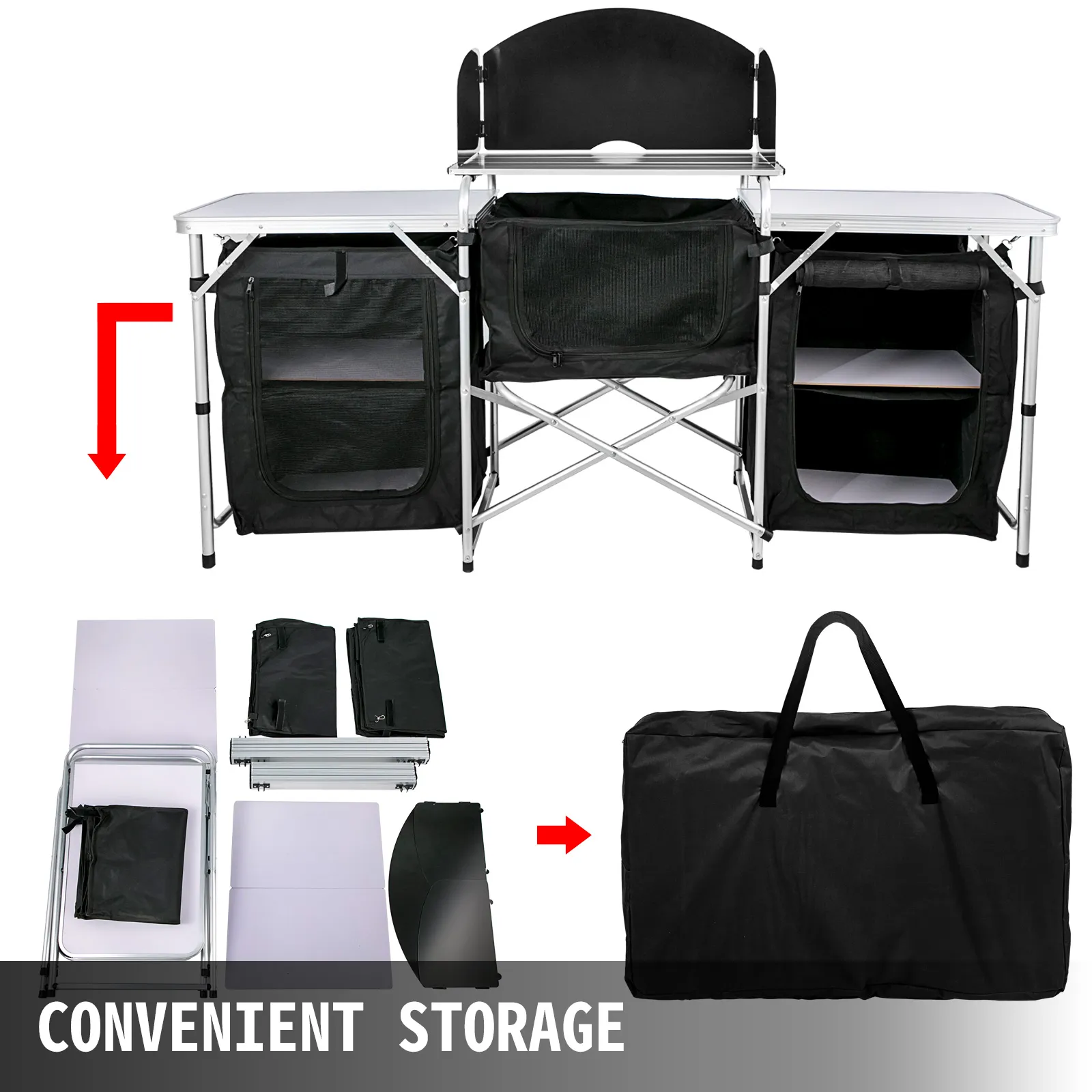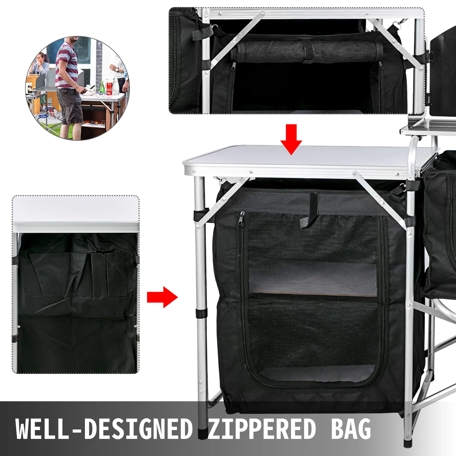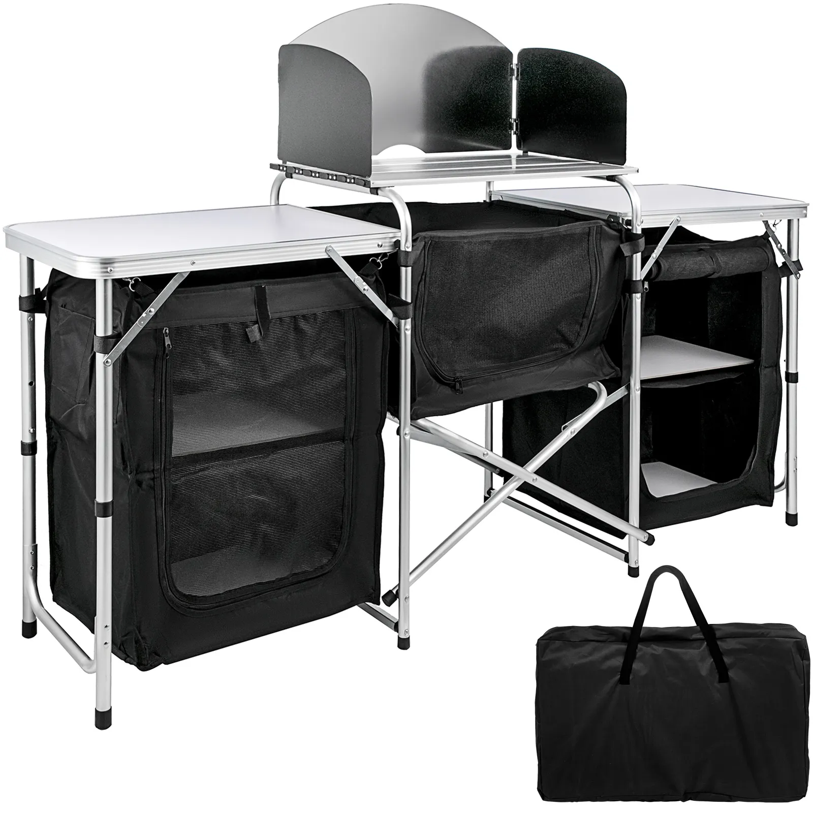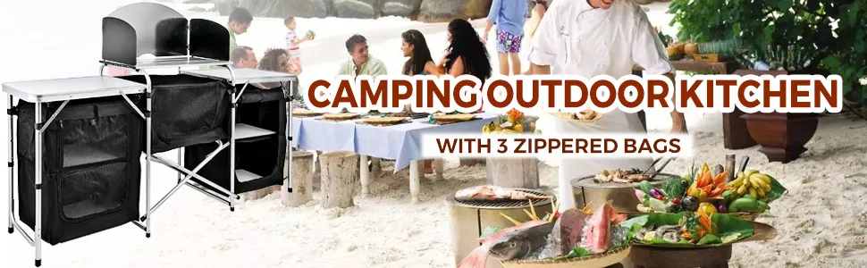 Grote Ruimtebebruik: Deze kampkeuken wordt geleverd met 2 bijzettafels, 1 aanrecht en 3 zakken met ritssluiting met grote capaciteit en biedt grote opslagruimte.