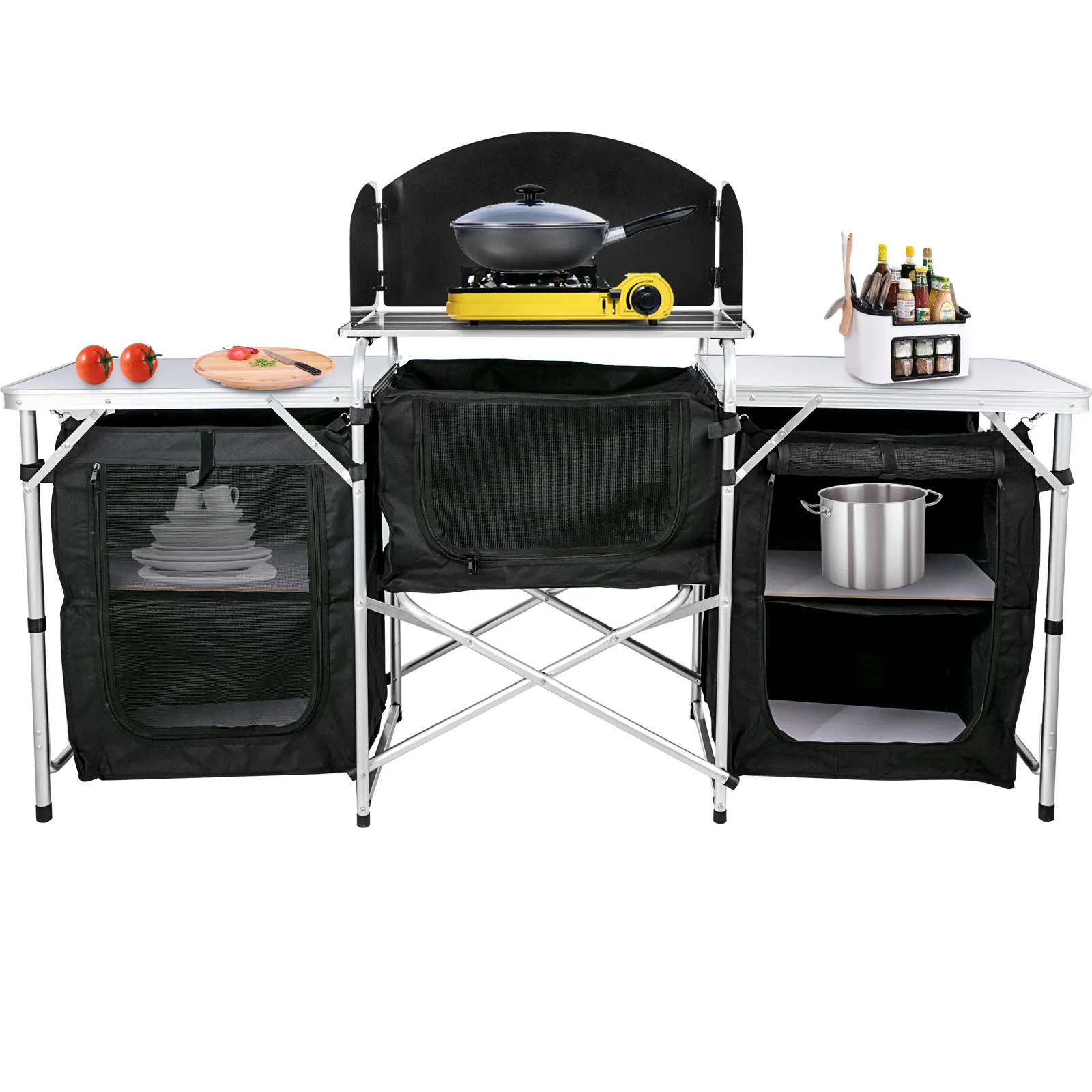 Brede Toepassing: Deze draagbare keuken wordt veel gebruikt voor buitenbarbecues, picknicks, buitenfeesten en verschillende buitenactiviteiten.