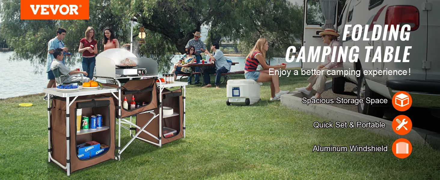 Het is zo eenvoudig om de VEVOR campingkeukentafel op te zetten. De tafel is in een paar minuten in elkaar te zetten, wat u tijd en moeite bespaart. Het opvouwbare ontwerp zorgt voor eenvoudige opslag en transport. Vouw hem snel uit wanneer u hem nodig hebt en pak hem netjes in wanneer u klaar bent. U verspilt geen kostbare tijd aan het in elkaar zetten. Met zijn lichtgewicht frame kan hij gemakkelijk worden meegenomen, ideaal voor mensen die constant onderweg zijn. Perfect voor picknicks, barbecues en camperreizen, het verbetert uw kampeerervaring. Dankzij de eenvoudige montage en draagbaarheid maakt deze tafel het koken buitenshuis gemakkelijker en leuker.