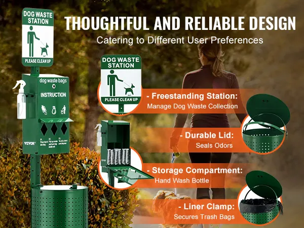 Great User Experience: This dog waste station includes a trash can, a lockable bag dispenser, and signage, featuring a hand wash bottle for a quick three-step process to handle dog waste.