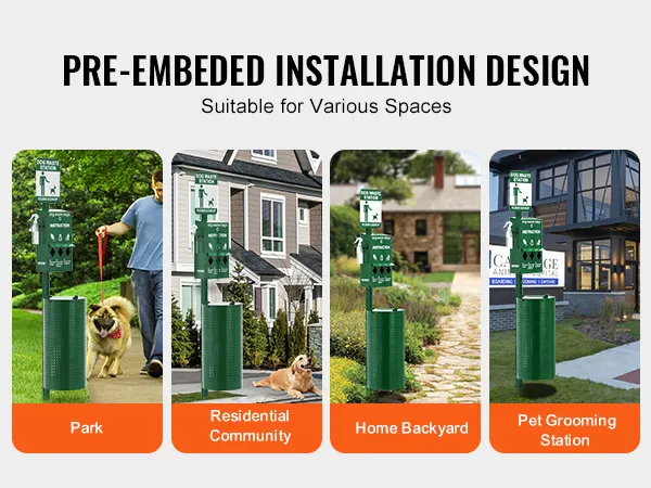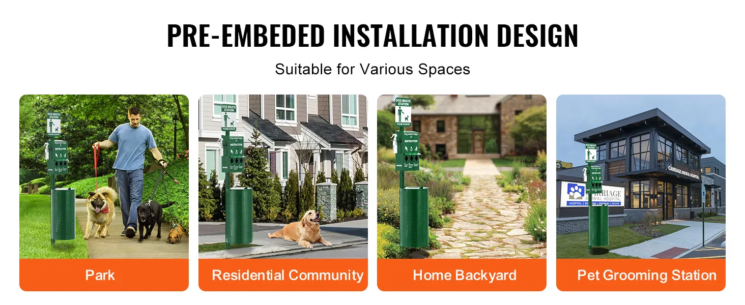 Easy Installation: This outdoor dog poop station features an in-ground installation design suitable for various environments. All necessary screws and tools are included, along with a user-friendly manual for straightforward setup.