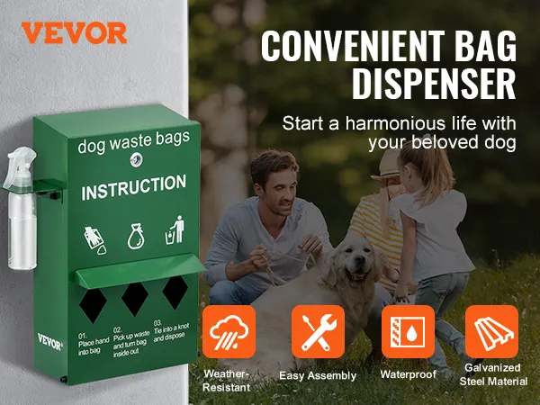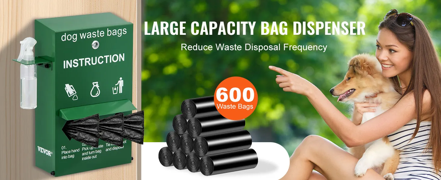This dog poop bag dispenser comes with 600 waste bags and is made from durable galvanized steel. It's ideal for pet-friendly places like parks, backyards, residential areas, and grooming salons, making it easier for pet owners to clean up after their furry friends!