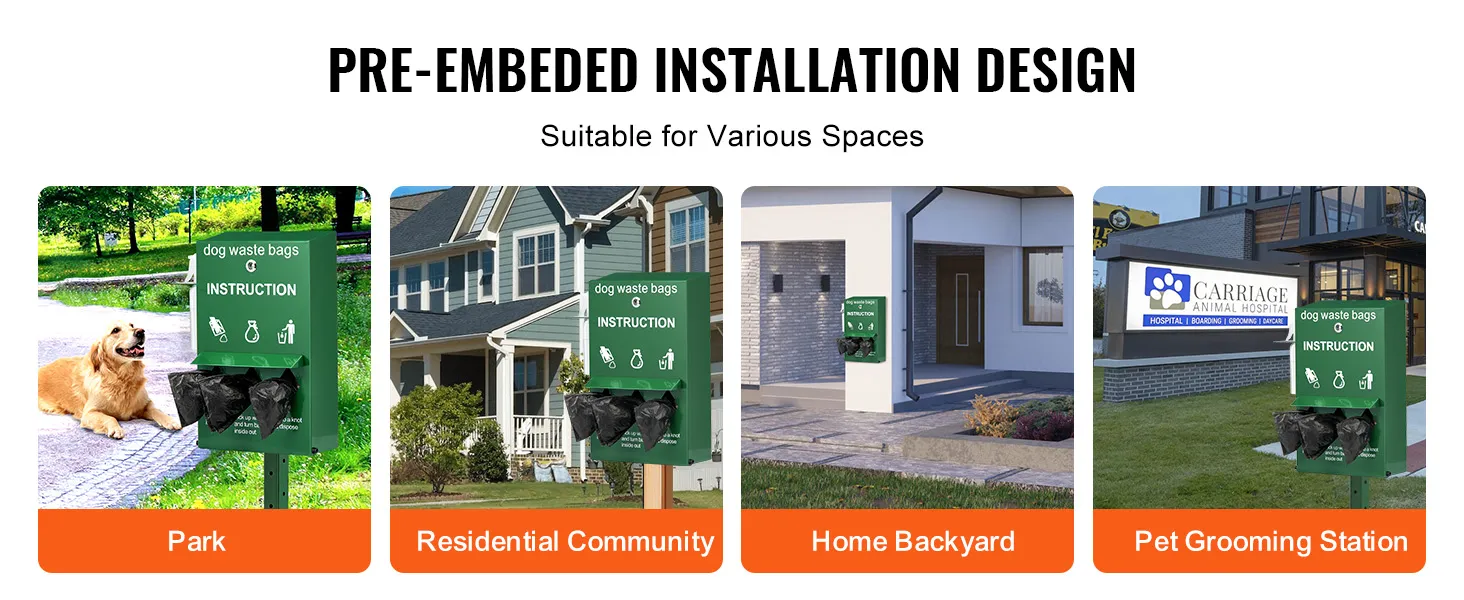 The dog poop bag dispenser is versatile and can be installed in various environments to meet your needs anytime, anywhere.