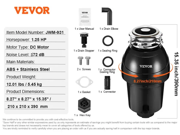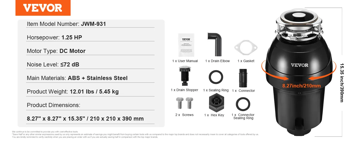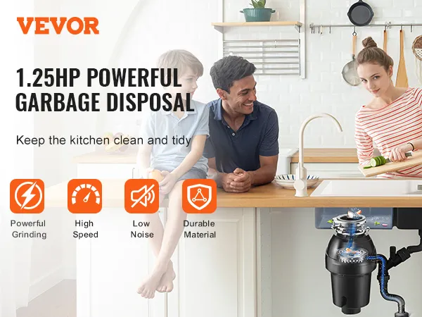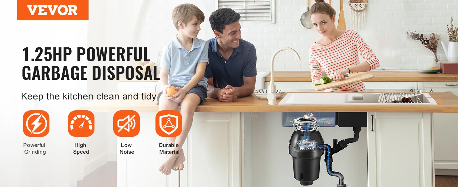 Extended Service Life: Made with waterproof, corrosion-resistant ABS shell and a stainless steel grinding system, this kitchen disposal ensures lasting performance even in humid environments.