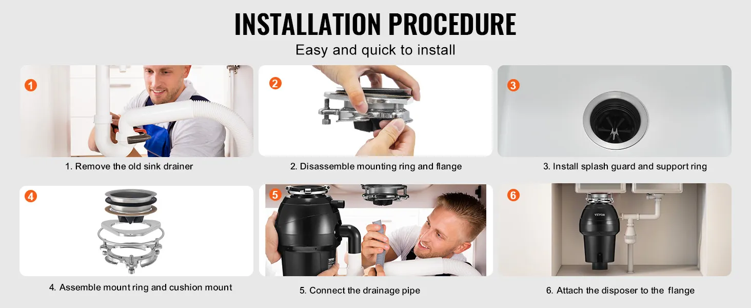 Quick & Secure Installation: Designed with a EZ mount twist-and-lock installation system, this food waste disposer allows for fast, tight installation without specialized tools or complicated steps—saving time and ensuring leak-proof connections.