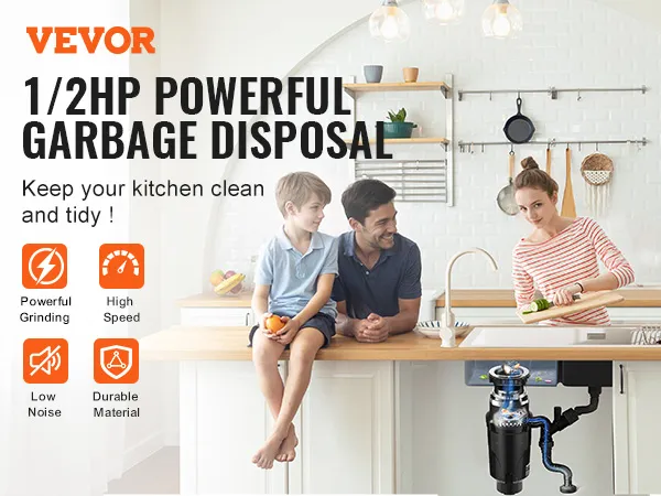 Quiet Operation: Operating at low noise level, this sink garbage disposal ensures minimal disruption, providing a quiet and comfortable kitchen environment without disturbing family activities.