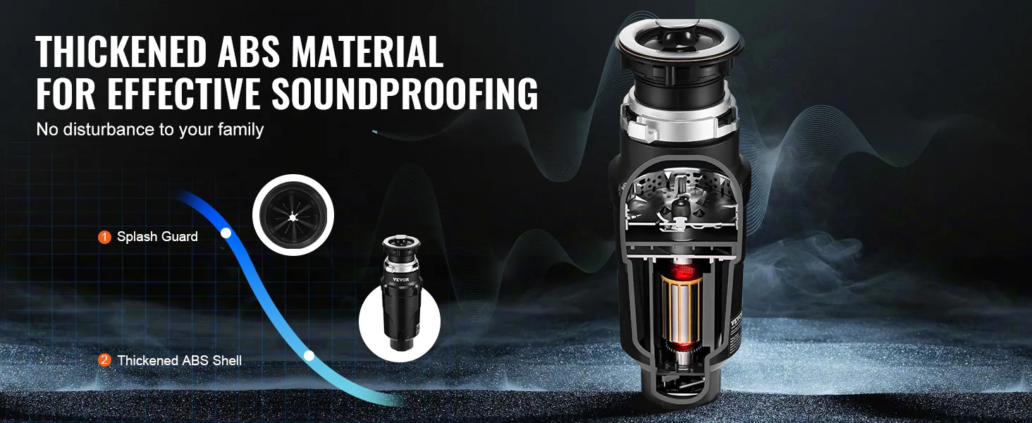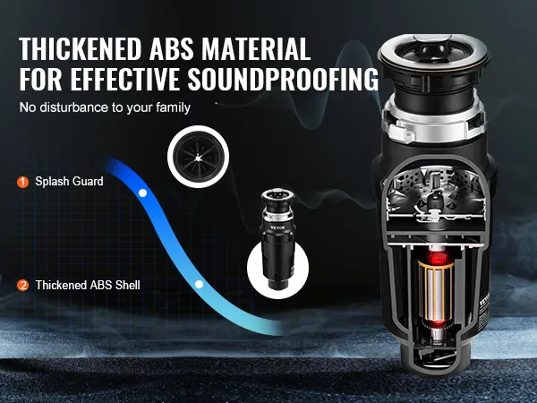 Enjoy quiet operation with this garbage disposer. This garbage disposer is crafted with thickened ABS material for effective noise reduction, ensuring quiet operation.