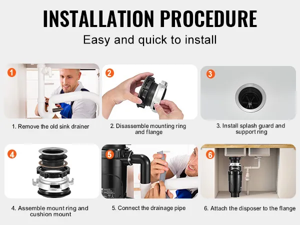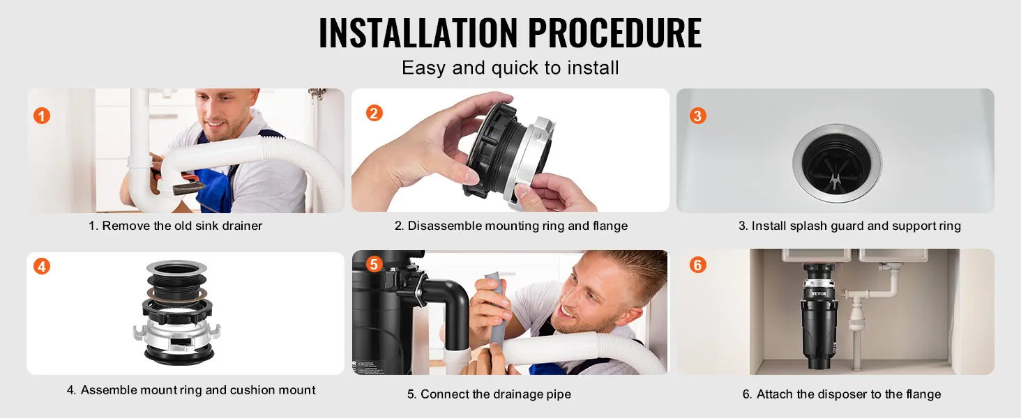 Quick & Secure Installation: Designed with a EZ mount twist-and-lock installation system, this food waste disposer allows for fast, tight installation without specialized tools or complicated steps—saving time and ensuring leak-proof connections.