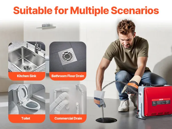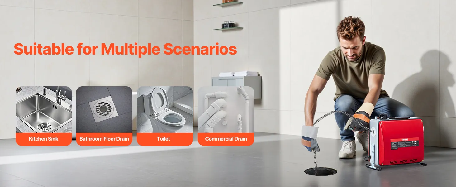 Of het nu gaat om gootstenen, douches, riolen, toiletten, badkamers, keukens, vloerafvoeren of commerciële loodgieterswerkzaamheden, de VEVOR-afvoerontstoppingsmachine biedt veelzijdige oplossingen voor uiteenlopende reinigingsbehoeften.