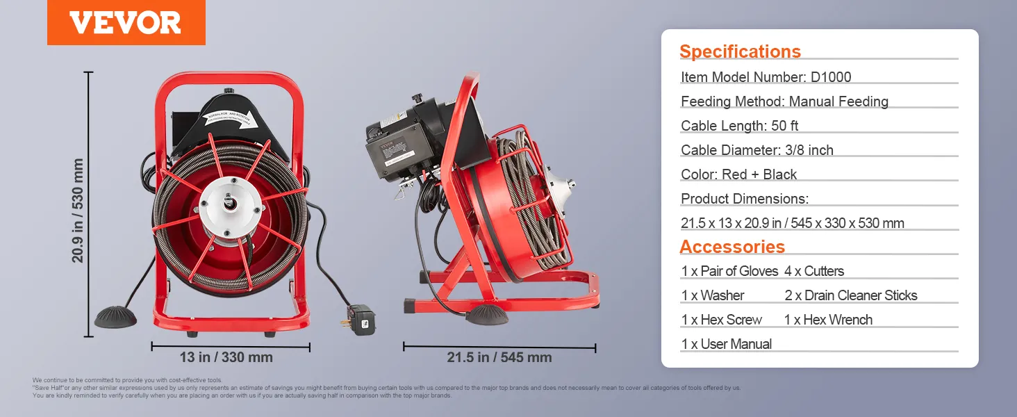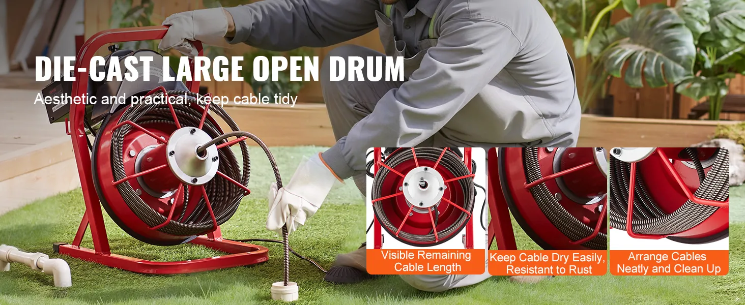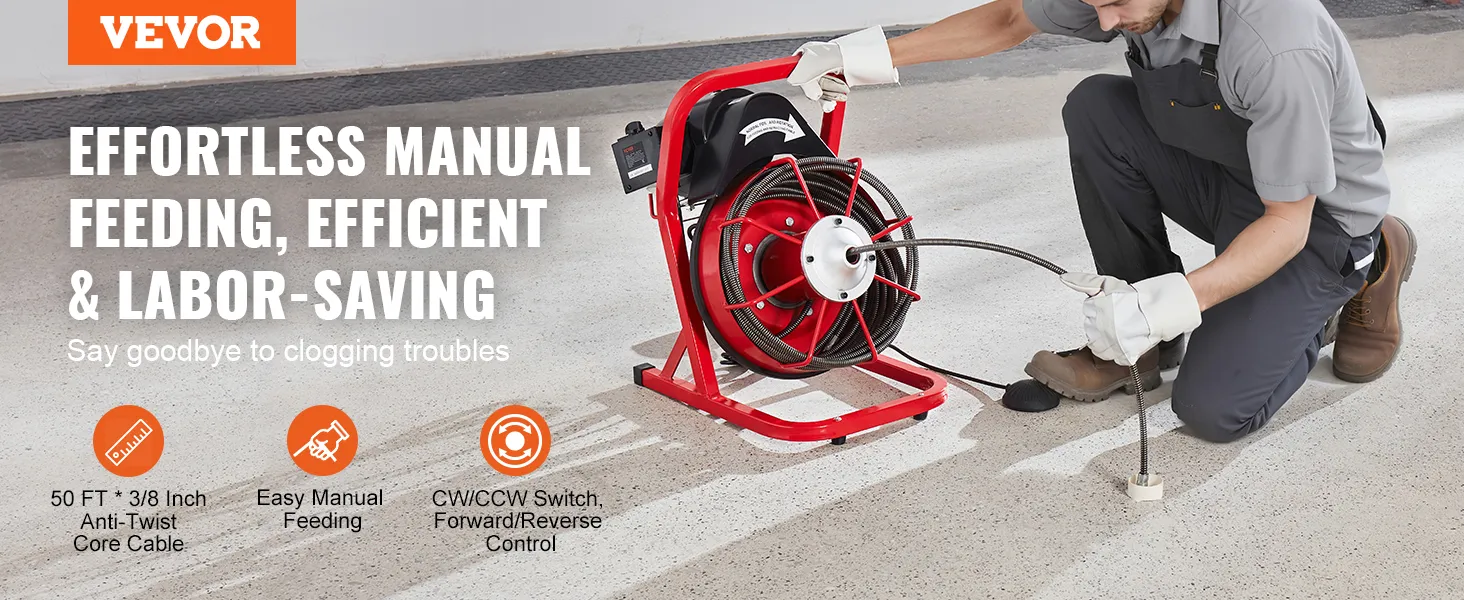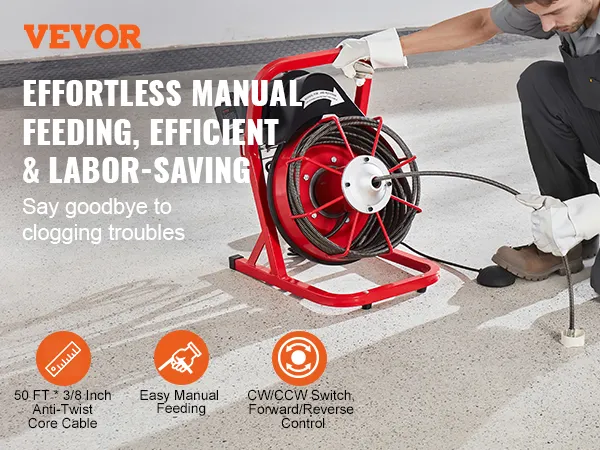 Zeg vaarwel tegen onaangename geuren en onderhoudsproblemen! Laat de VEVOR elektrische pijpreinigingsmachine met 15mx9,53mm massieve kernkabel alle verstoppingsproblemen in één keer oplossen zonder zorgen!