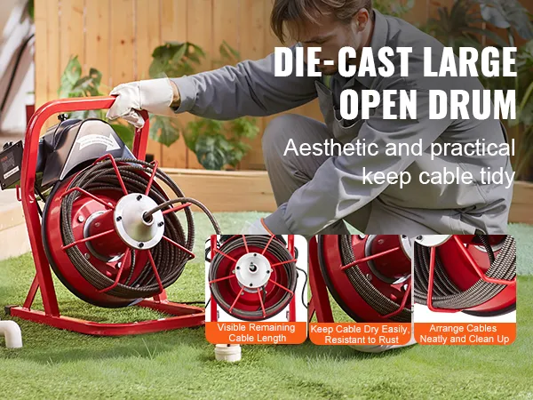 Onze elektrische afvoerreiniger wordt geleverd met een open trommelontwerp voor moeiteloze reiniging en onderhoud. Het maakt real-time monitoring van de kabellengte tijdens bedrijf mogelijk, waardoor de bruikbaarheid en operationele efficiëntie worden verbeterd.