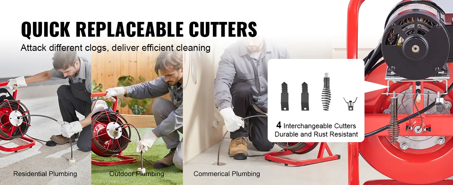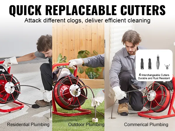 Voer uw werk efficiënt uit met onze 4 verwisselbare snijgereedschappen. Of het nu gaat om commerciële loodgietersinstallaties, particulier gebruik, restaurants, fabrieken of scholen - de VEVOR rioolvijzel biedt veelzijdige oplossingen voor een breed scala aan toepassingen.