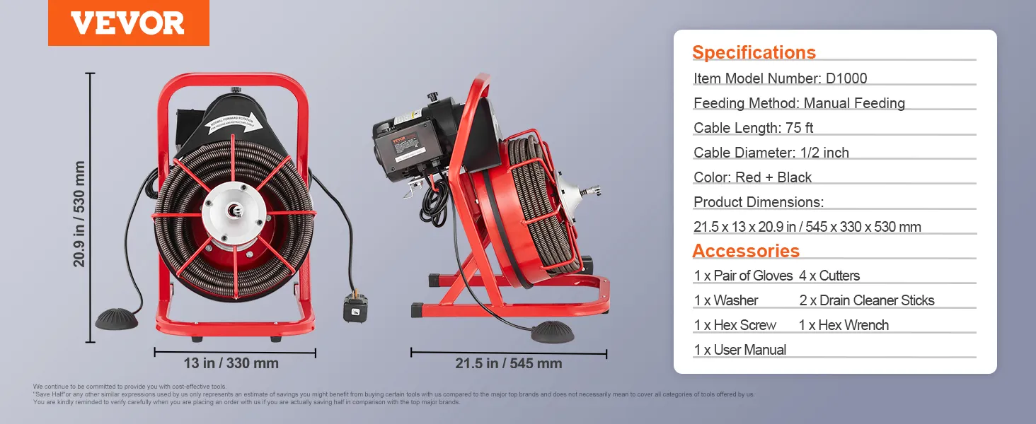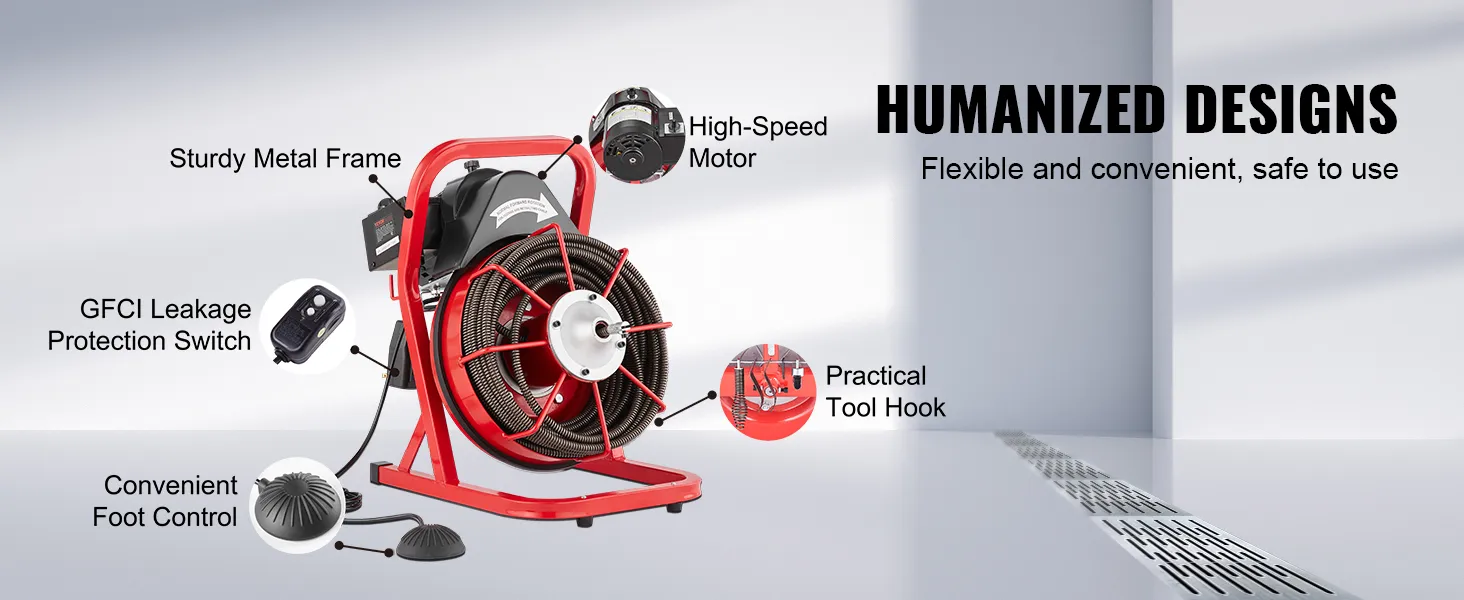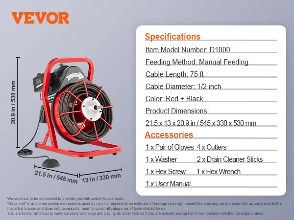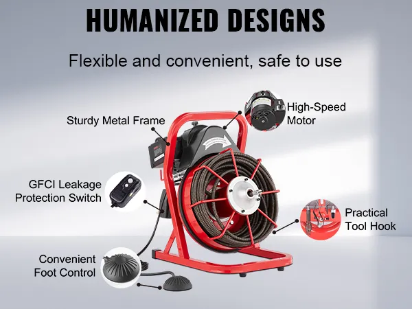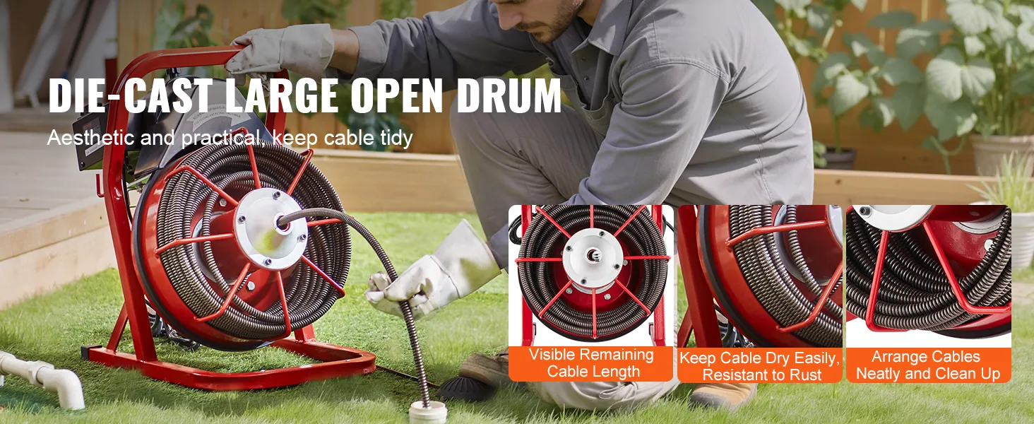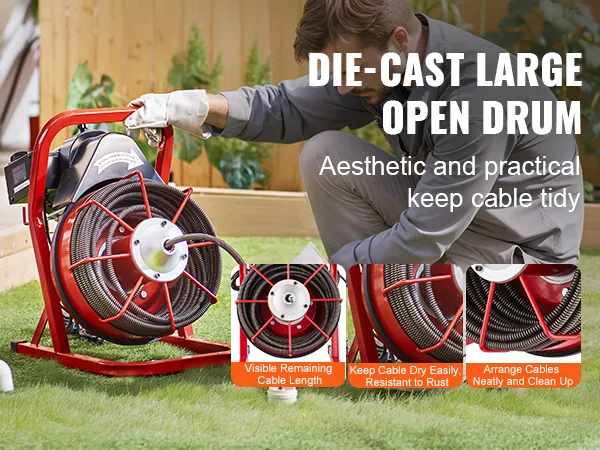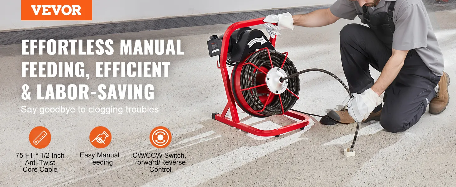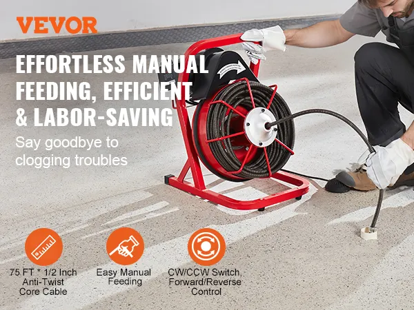 Zeg vaarwel tegen onaangename geuren en onderhoudsproblemen! Laat de VEVOR elektrische pijpreinigingsmachine met 22,86 m x 12,7 mm massieve kernkabel alle verstoppingsproblemen in één keer oplossen zonder zorgen!