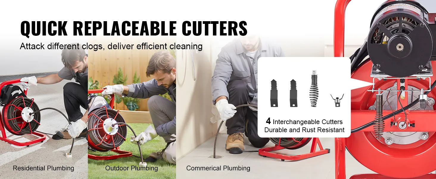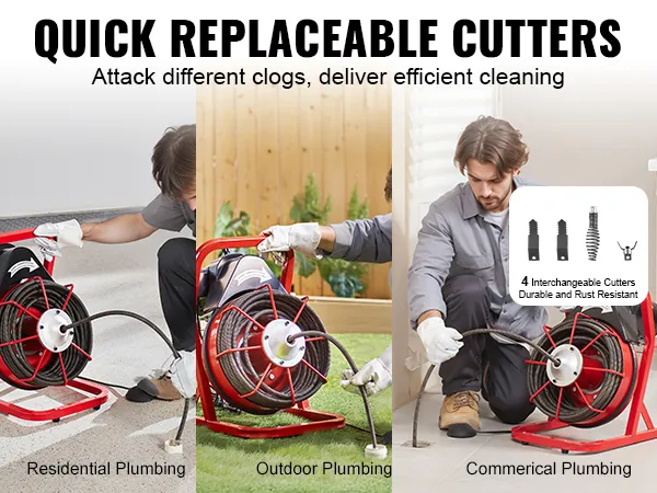 Voer uw werk efficiënt uit met onze 4 verwisselbare snijgereedschappen. Of het nu gaat om commerciële loodgietersinstallaties, particulier gebruik, restaurants, fabrieken of scholen - de VEVOR rioolvijzel biedt veelzijdige oplossingen voor een breed scala aan toepassingen.