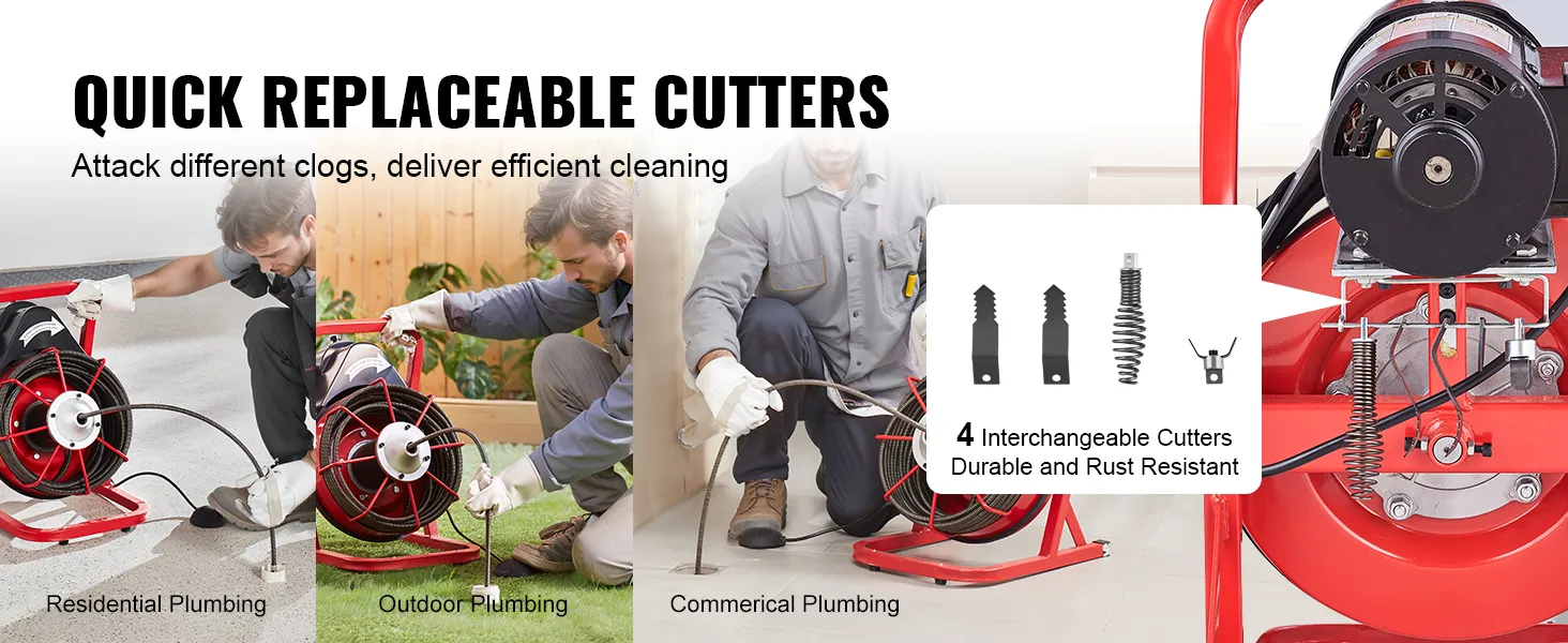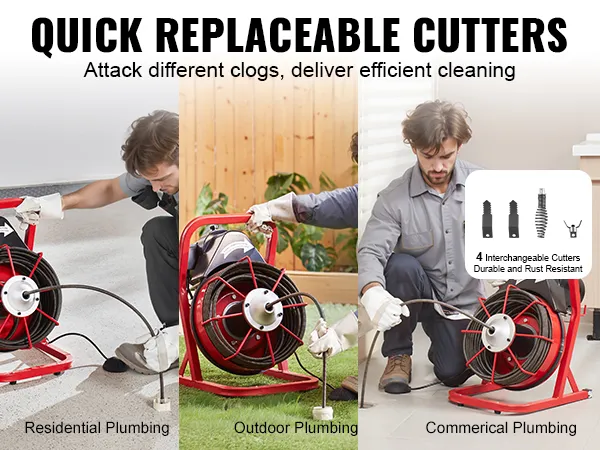 Voer uw werk efficiënt uit met onze 4 verwisselbare snijgereedschappen. Of het nu gaat om commerciële loodgietersinstallaties, particulier gebruik, restaurants, fabrieken of scholen - de VEVOR rioolvijzel biedt veelzijdige oplossingen voor een breed scala aan toepassingen.