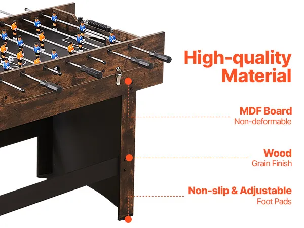 High-quality Material: Constructed with 12mm thick MDF board, this air hockey table ensures smooth hockey movement. Its adjustable balancing legs with sturdy structure and durable material provide a stable and secure gaming experience