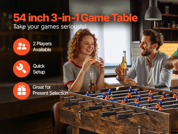 3-in-1 Game Table: This 54-inch 3-in-1 game table features a compact design that saves space. Combining air hockey, foosball, and table tennis, it's an affordable option for hours of family fun