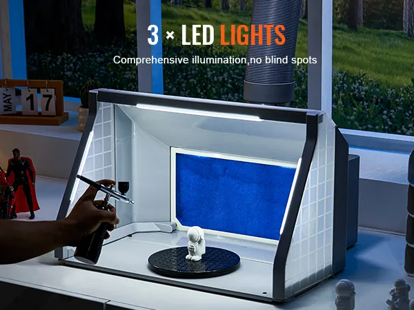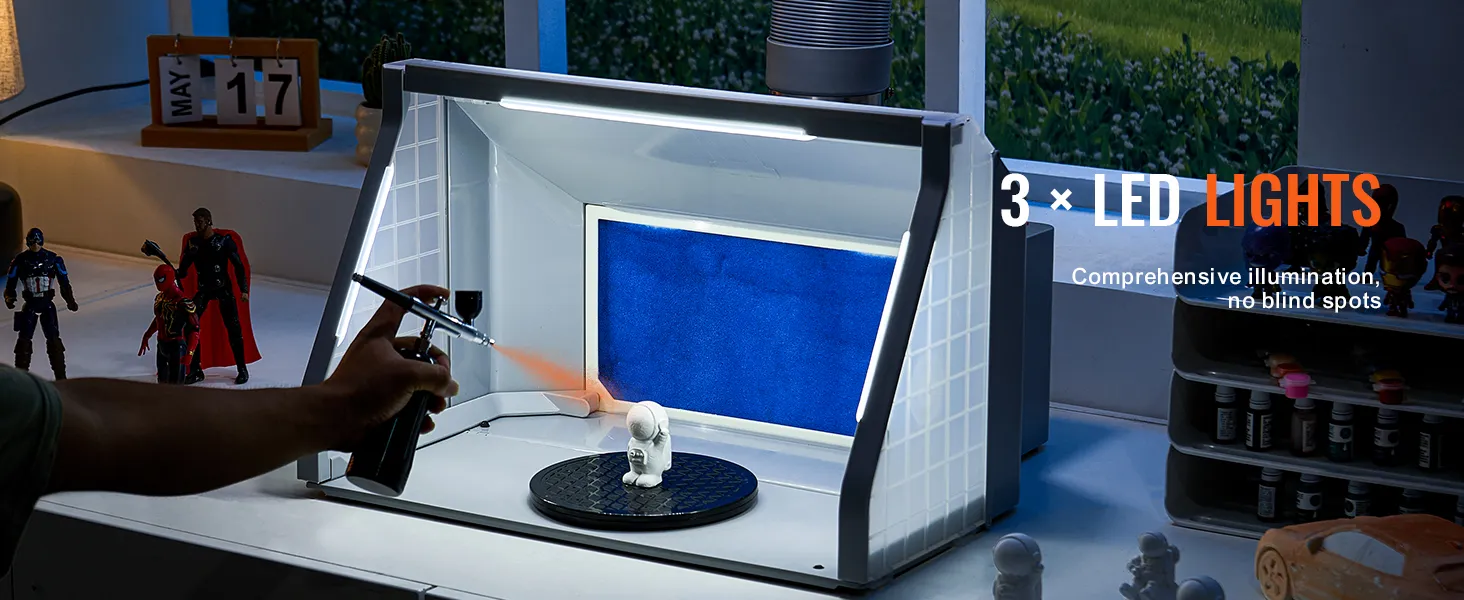 Three LED lights provide ample lighting, ensuring that every stroke and shade is presented accurately. Whether you are a graffiti enthusiast or a professional artist, this airbrush paint booth will help you achieve precision when painting models, showcasing professional-level achievements!