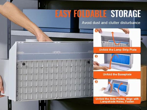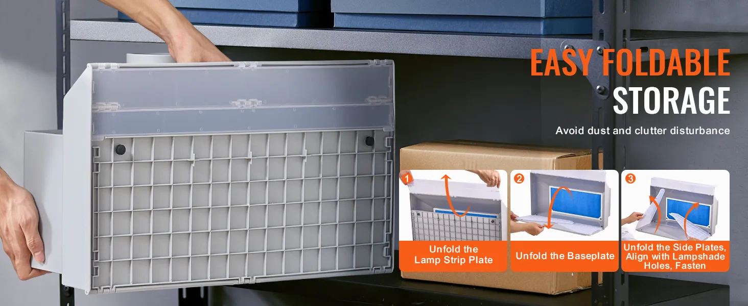 The unique foldable design transforms the spray booth airbrush into a handy carrying case, allowing you to travel easily without worrying about space and volume. When folded, its dimensions are 21.7 x 10.6 x 12.6 in / 55 x 27 x 32 cm, making it easy to store on a shelf or in a cabinet.
