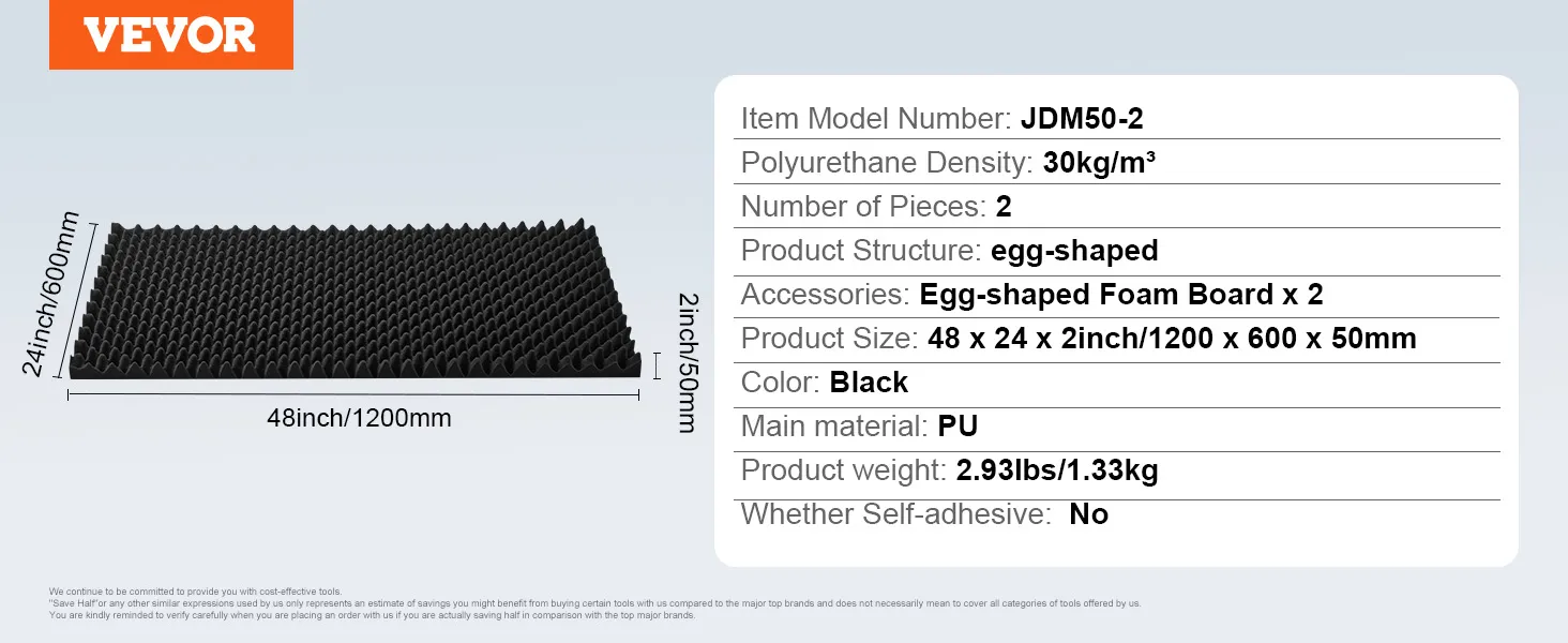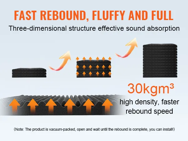 Efficient Soundproofing: The 30kg/m³ high-density polyurethane foam effectively absorbs high-frequency sound waves, improving the absorption of vibration echoes, reverberation, and noise, which helps reduce noise pollution and enhance sound clarity. NOTE: Vacuum packed. Please let it sit to regain shape. Feel free to contact customer service if you have any questions