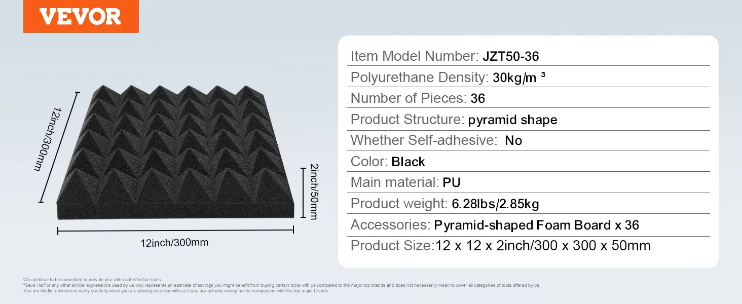 Various Specifications: Includes 36 pyramid shaped foam panels, covering 36 sq.ft. You can purchase the appropriate quantity based on your needs, reducing noise while beautifying your indoor environment.