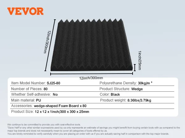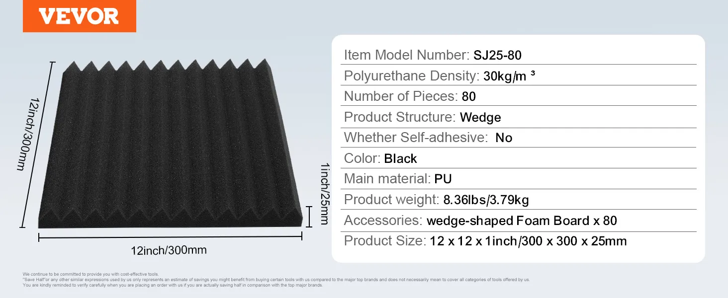 Various Specifications: Includes 80 wedge-shaped foam panels, covering 80 sq.ft. You can purchase the appropriate quantity based on your needs, reducing noise while beautifying your indoor environment.
