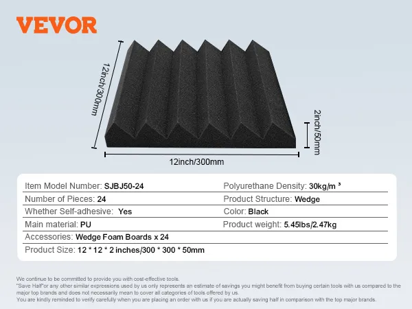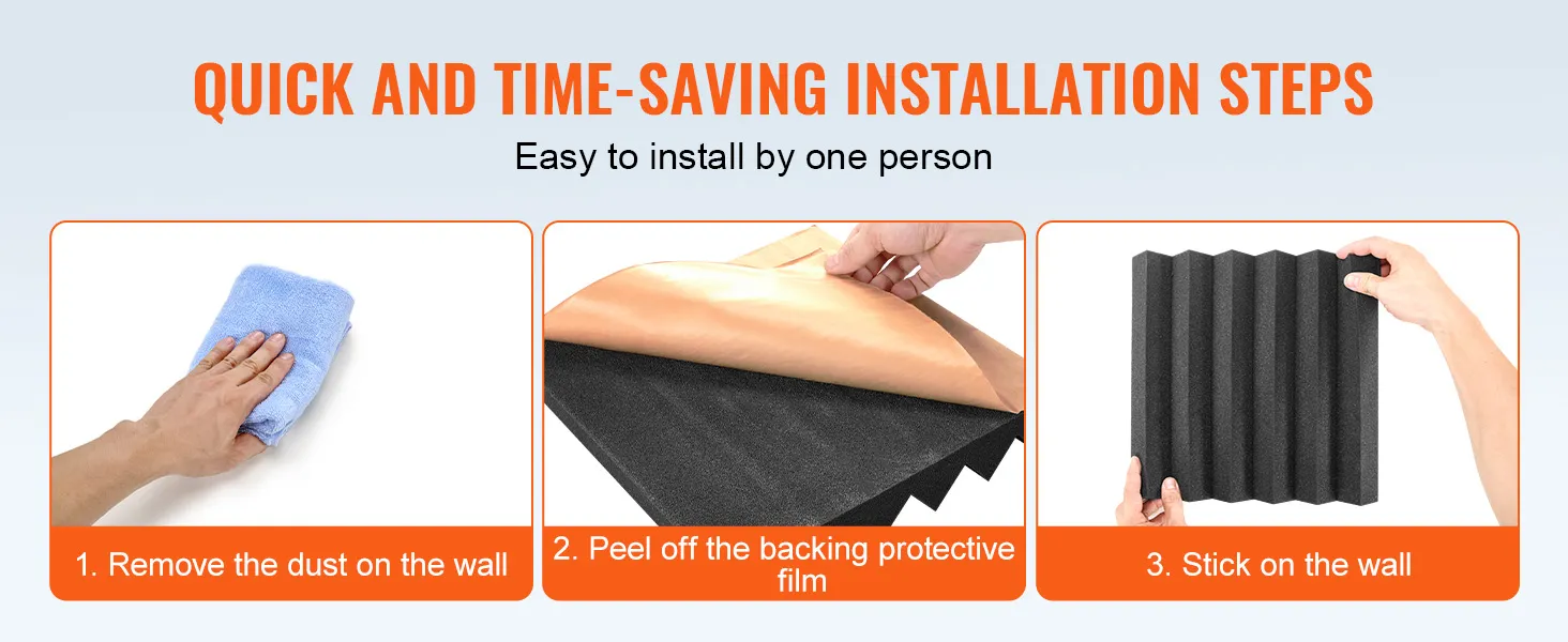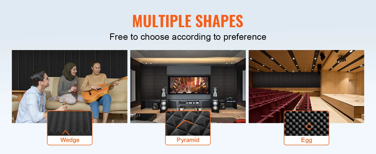 Various Specifications: Includes 24 wedge-shaped foam panels, covering 24 sq.ft. You can purchase the appropriate quantity based on your needs, reducing noise while beautifying your indoor environment.