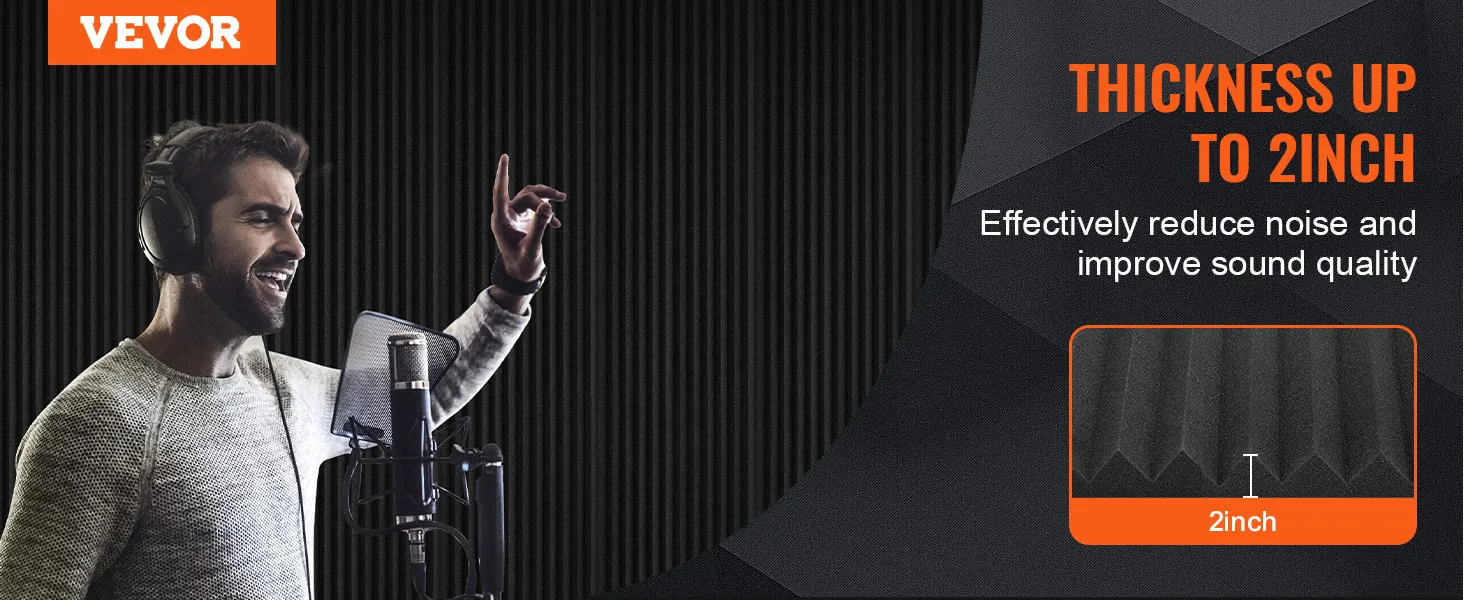 Efficient Soundproofing: The 30kg/m³ high-density polyurethane foam effectively absorbs high-frequency sound waves, improving the absorption of vibration echoes, reverberation, and noise, which helps reduce noise pollution and enhance sound clarity. NOTE: Vacuum packed. Please let it sit to regain shape. Feel free to contact our customer service if you have any questions