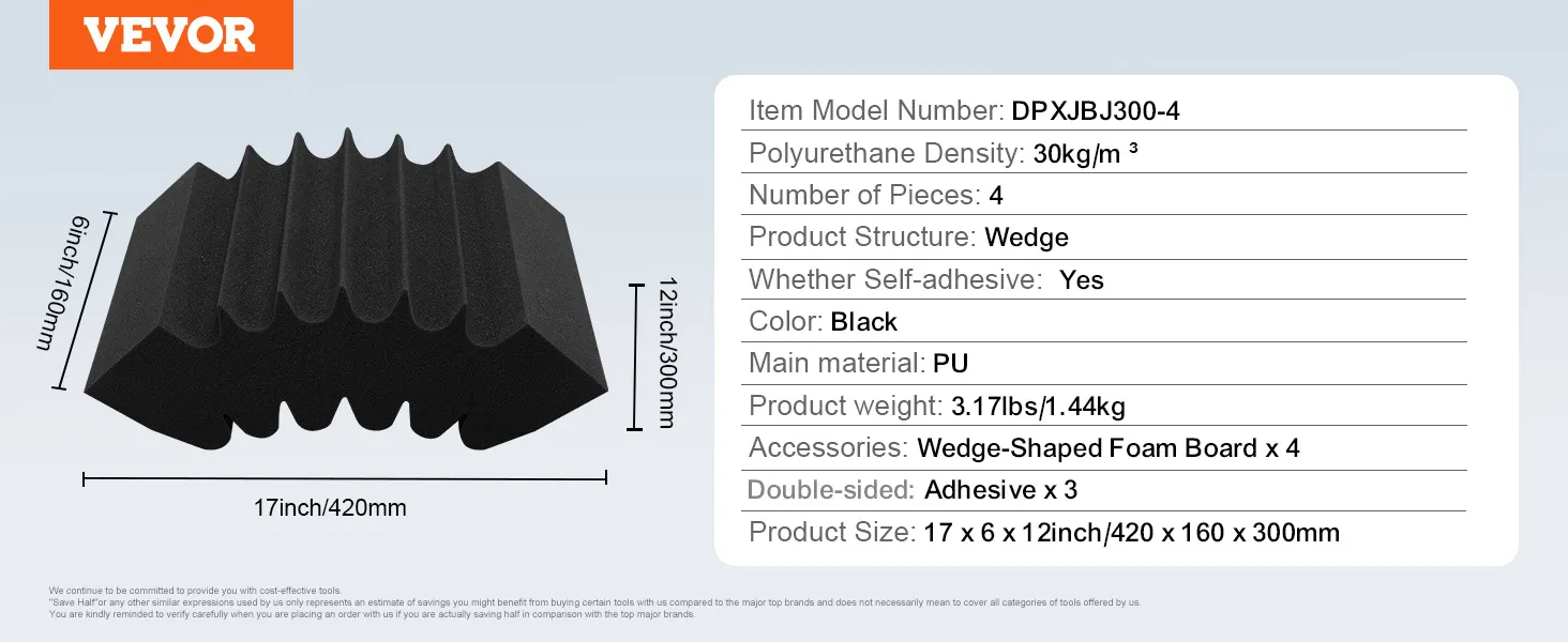 Various Specifications: Includes 4 wedge-shaped foam panels, covering 3 sq.ft. You can purchase the appropriate quantity based on your needs, reducing noise while beautifying your indoor environment.