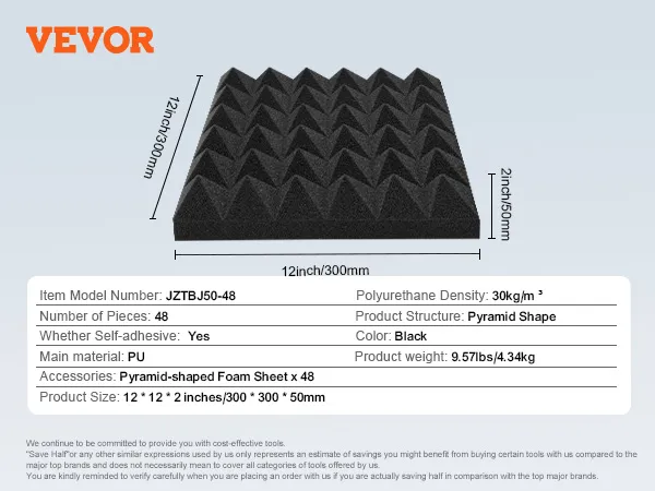 Various Specifications: Includes 48 pyramid shaped foam panels, covering 48 sq.ft. You can purchase the appropriate quantity based on your needs, reducing noise while beautifying your indoor environment.
