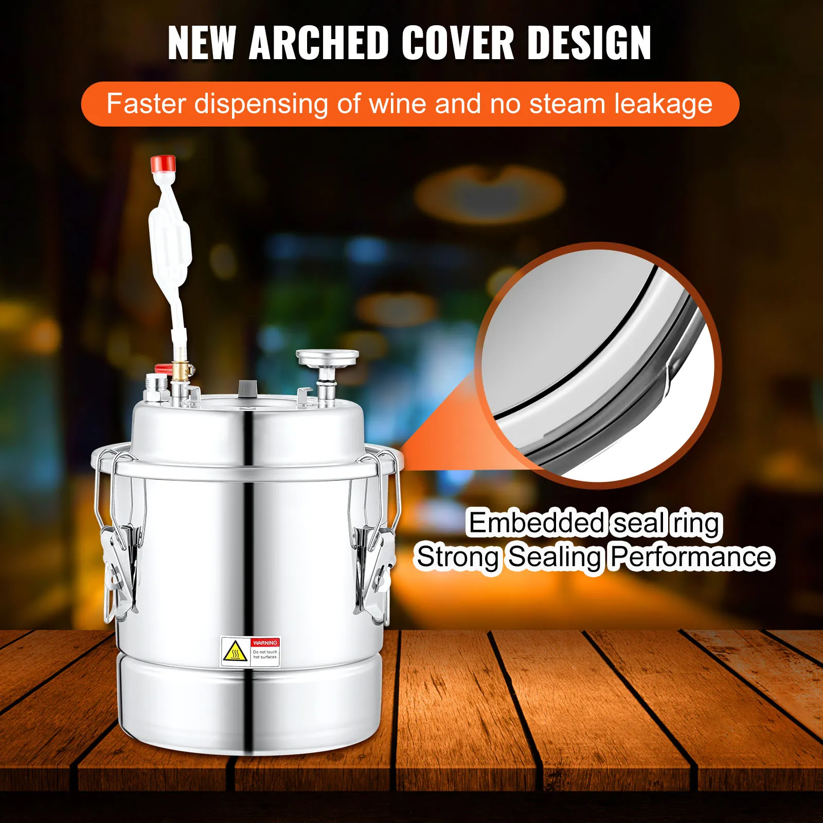 Compared to a flat lid, our alcohol distiller can be more conducive to steam rising without blockage during the distillation process, increasing the speed of the spirit. The embedded silicone ring for a better fit and seal, avoiding steam leakage.