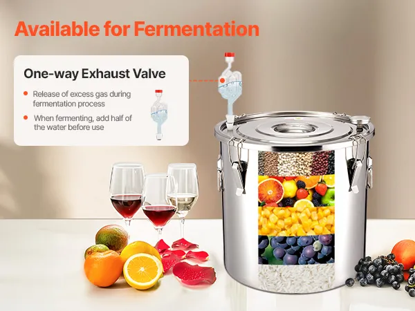 Secure Fermentation and Heating: The fermentation barrel is convenient to use. A unidirectional exhaust valve releases gases produced during fermentation, reducing internal pressure. The thickened stainless steel bottom is compatible with various heating methods like wood fire and gas stoves. The temperature gauge on the lid displays Celsius and Fahrenheit temperatures, facilitating temperature monitoring during distillation.