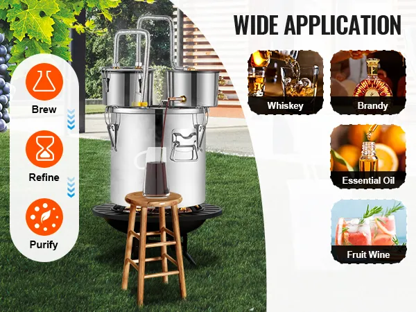 This simple distillation unit is perfect for beginners to brew and produce fruit wine, rum, whiskey, vodka, distilled water, beer, ethanol, essential oils, and other distillation products at home, showcasing your sincerity and craftsmanship during holidays and gatherings.