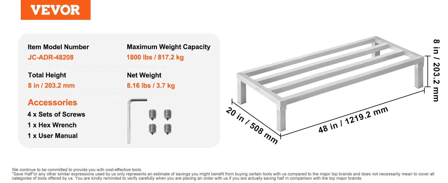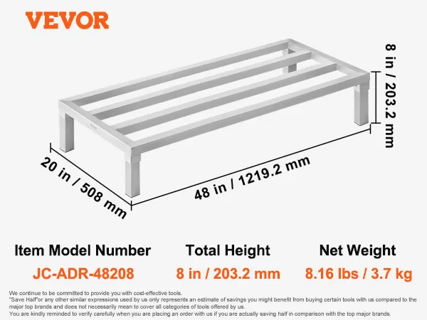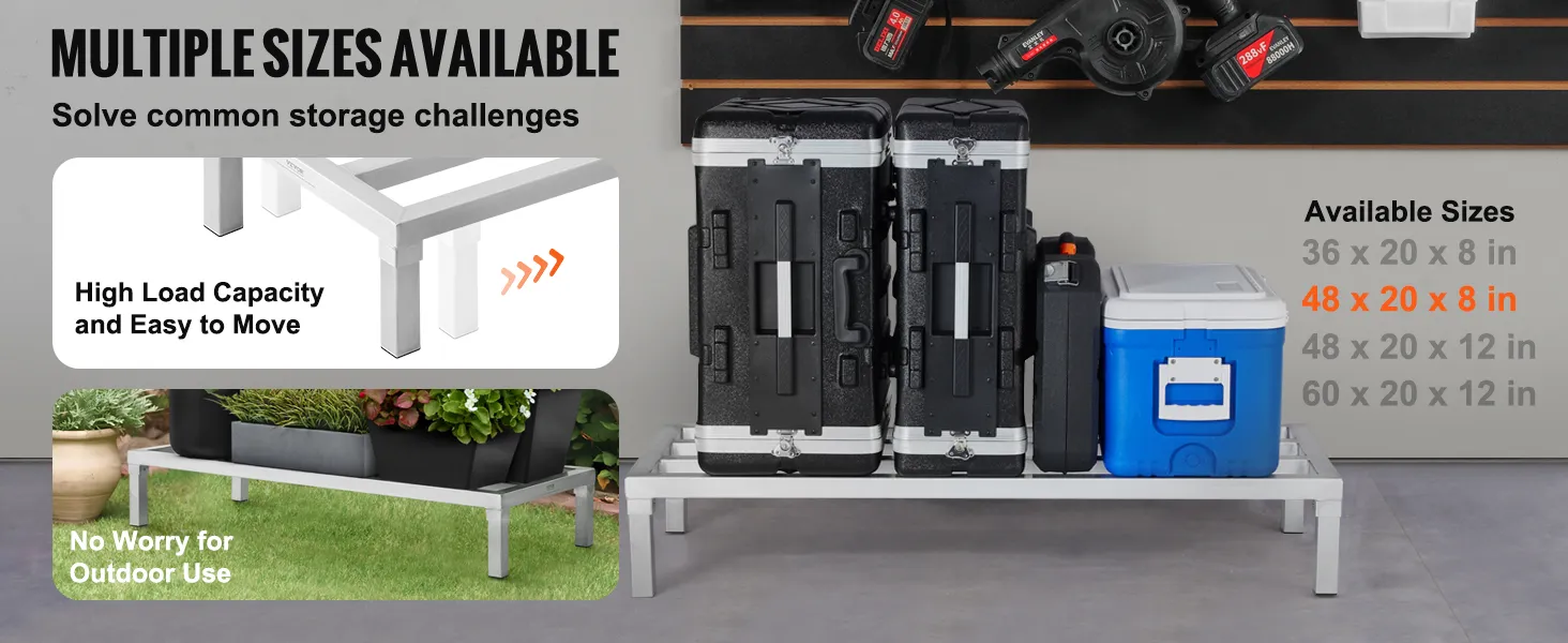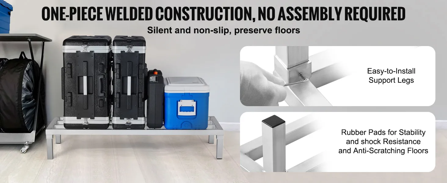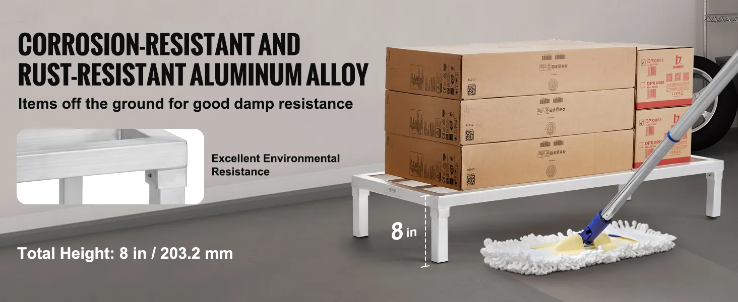 VEVOR Aluminum Dunnage Rack, 48” x 20” Commercial Food Floor Rack, 8” Off the Floor, 1800 lbs Capacity All-Welded Aluminum Storage Rack, for Storage in Restaurants, Kitchens, Garages and Vehicles