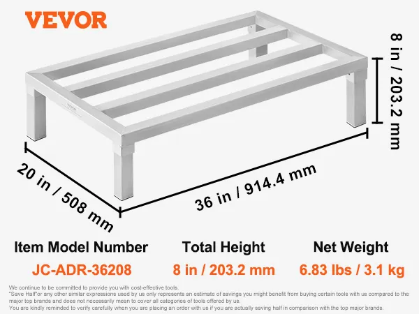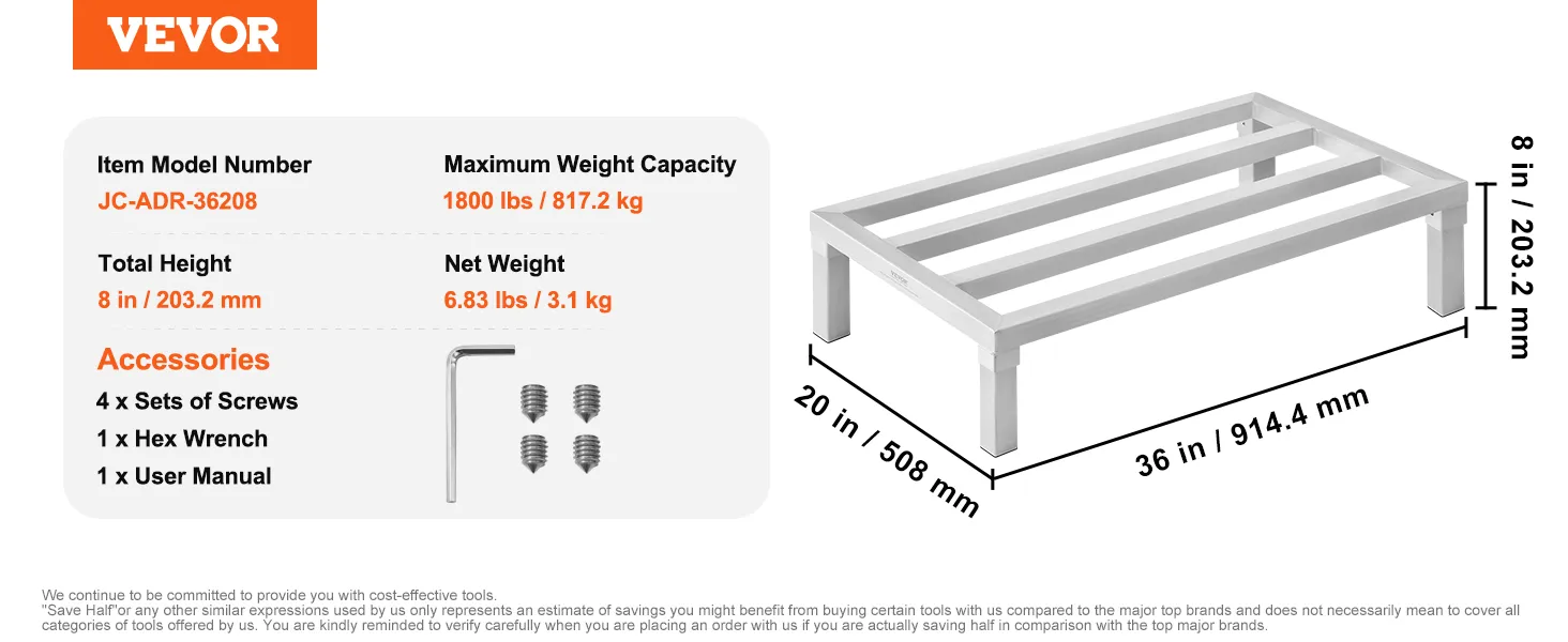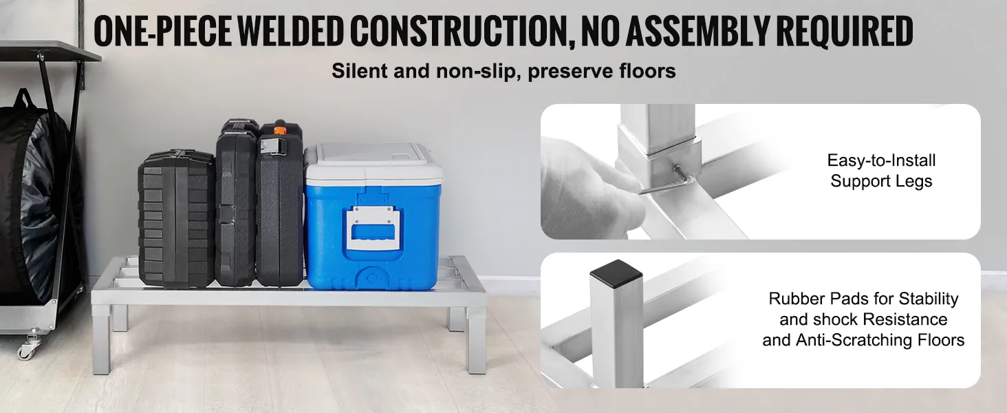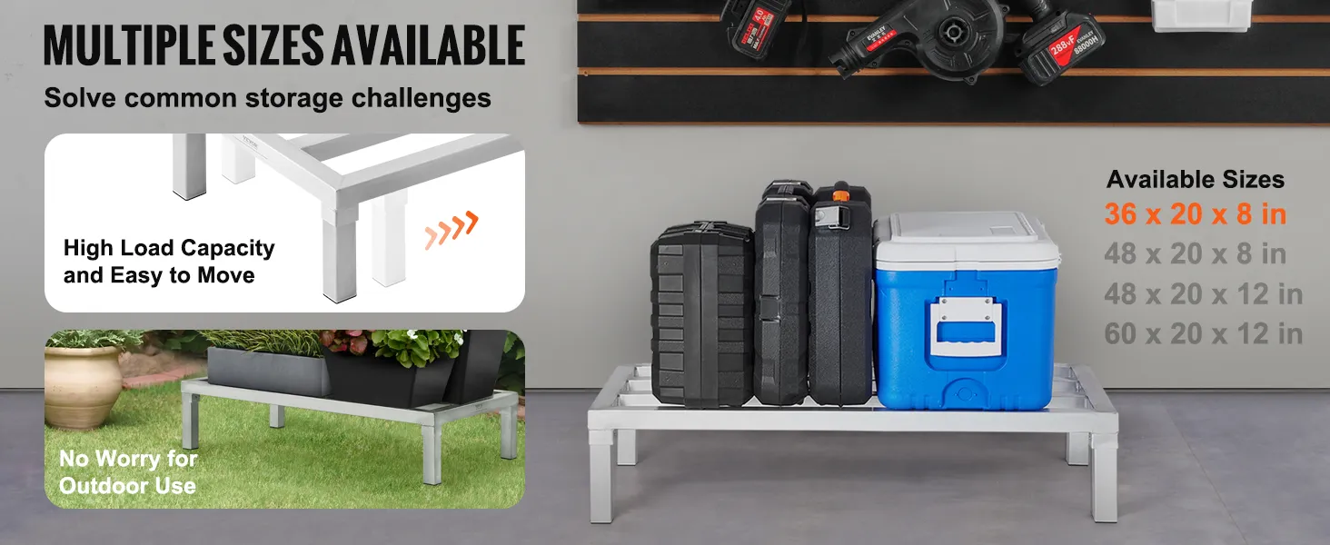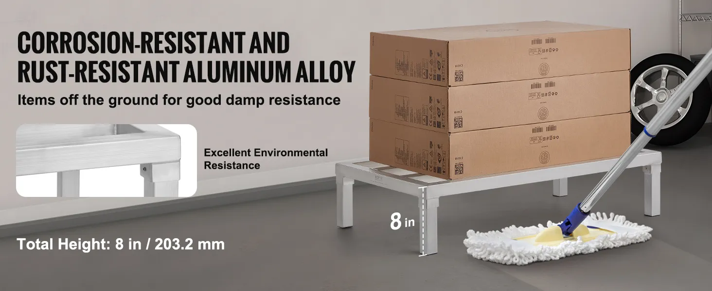 VEVOR Aluminum Dunnage Rack, 36” x 20” Commercial Food Floor Rack, 8” Off the Floor, 1800 lbs Capacity All-Welded Aluminum Storage Rack, for Storage in Restaurants, Kitchens, Garages and Vehicles