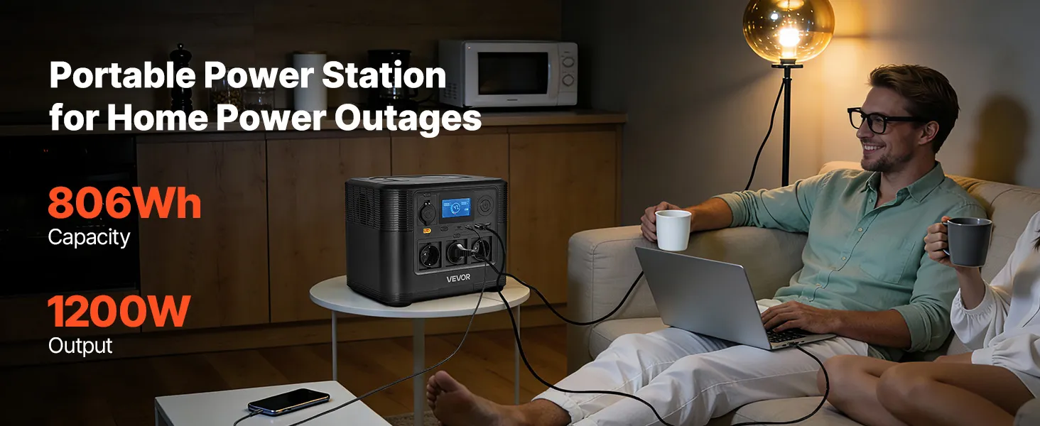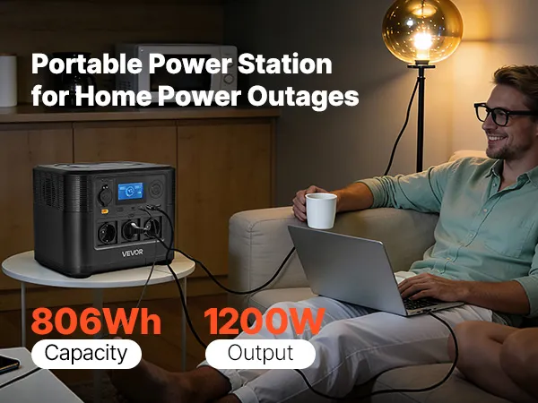 Betrouwbare mobiele stroomvoorziening: Geniet van een stabiele stroomvoorziening thuis of tijdens uw outdooravonturen met dit draagbare powerstation (1200 W, 806 Wh). Het kan tegelijkertijd mobiele telefoons, autokoelkasten, luidsprekers en camera's van stroom voorzien gedurende ongeveer 9 uur tijdens het kamperen.