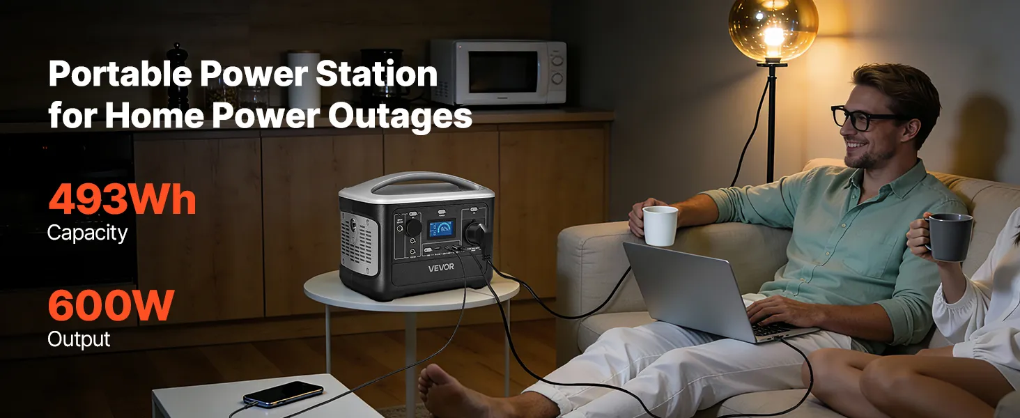 Met een hoge capaciteit van 493 Wh en een uitgangsvermogen van 600 W levert dit draagbare powerstation voldoende en betrouwbare stroom voor noodgevallen thuis en tijdens het kamperen in de buitenlucht – zodat u overal voorbereid en van stroom voorzien bent.