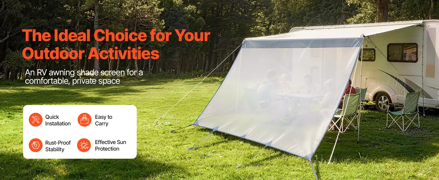 VEVOR zonnescherm (2 x 3,3 m) voor luifels (3,5 m), voorpaneel van polyester meshstof, dubbel gestikt en ademend privacyscherm voor campers, caravans en campers.