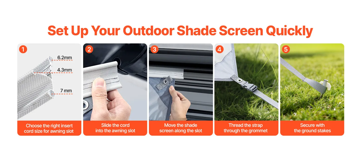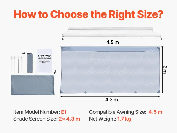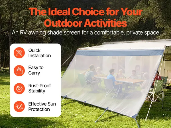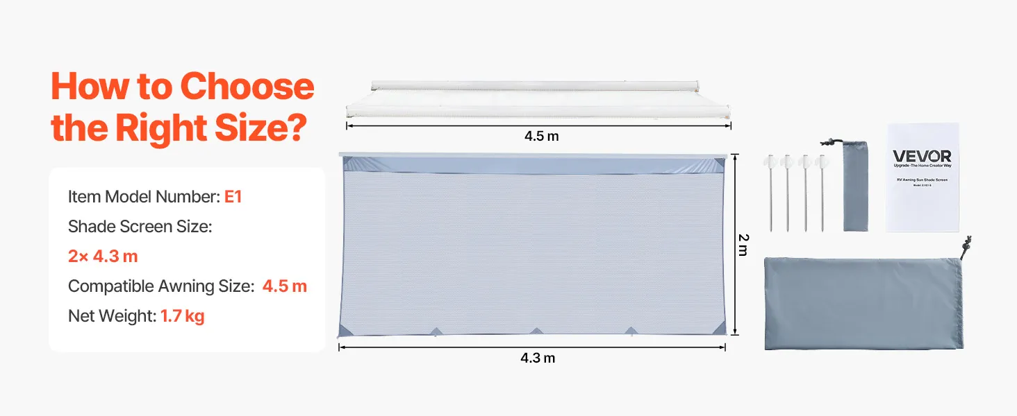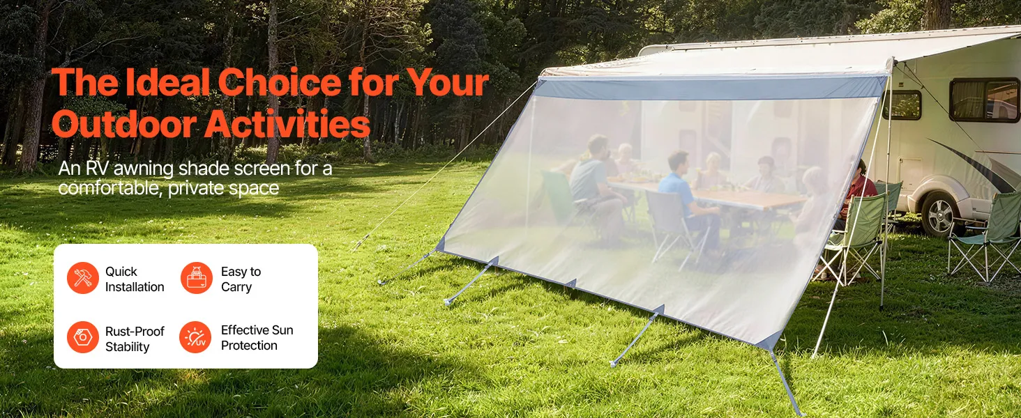 VEVOR zonnescherm (2 x 4,3 m) voor luifels (4,5 m), voorpaneel van polyester meshstof, dubbel gestikt en ademend privacyscherm voor campers, caravans en campers.