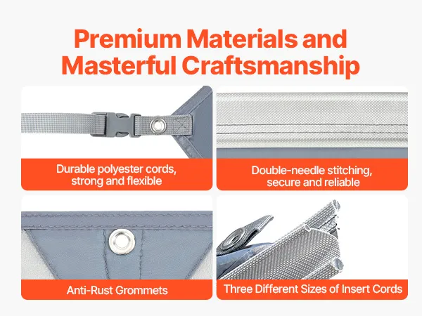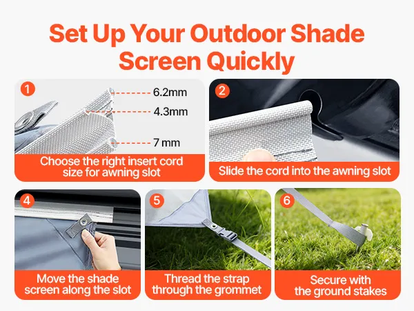 Snelle montage en stevige bevestiging: Drie bevestigingskoorden met verschillende diameters (4,3 mm / 6,2 mm / 7 mm) passen op diverse zonneschermrails, waardoor een nauwsluitende pasvorm, eenvoudige installatie en stabiele ondersteuning gegarandeerd zijn. Inclusief opbergtassen voor ruimtebesparende opslag en gemakkelijk transport.