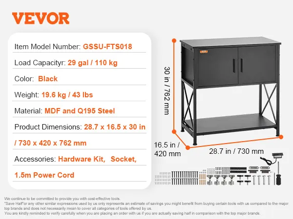 VEVOR Aquariumstandaard, 29 Gallon Aquariumstandaard, 730 x 420 x 762 mm Schildpaddentankstandaard van staal en MDF, draagvermogen 110 kg, Reptielentankstandaard met opbergkast en ingebouwde voeding