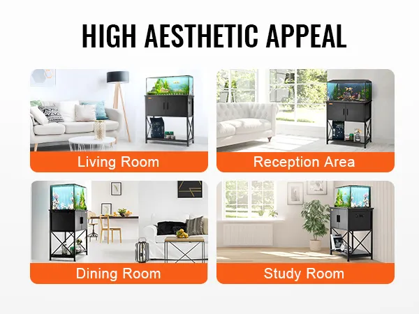 Stijlvol ontwerp: onze aquariumstandaard heeft een strakke zwarte buitenkant en past moeiteloos bij verschillende decorstijlen. U kunt hem plaatsen in uw woonkamer, ontvangstruimte, eetkamer, studeerkamer en meer.
