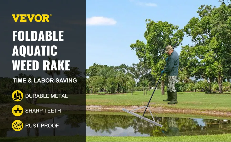 【FOLDABLE ALUMINUM RAKE】This pond weed cutter is made of sturdy and lightweight aluminum, water- and rust-proof for long-term use. The foldable design of the head makes it easy to store without taking up large space.