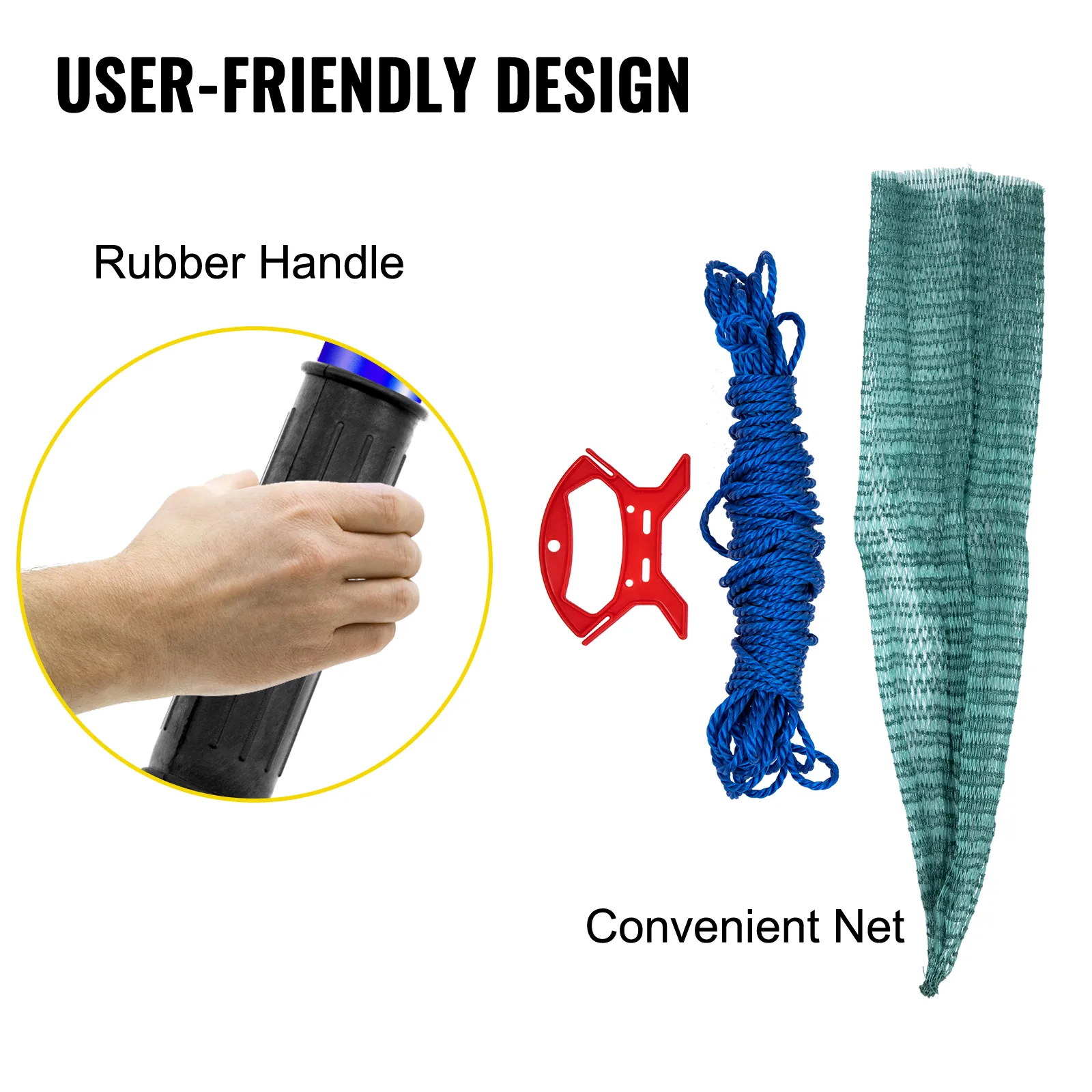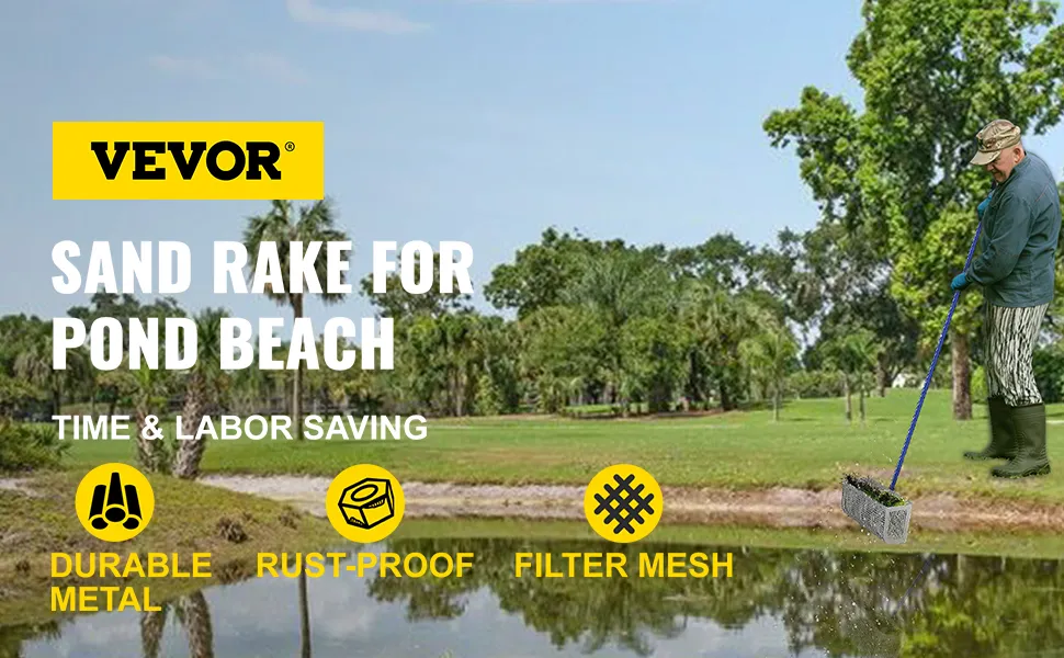 Met deze onkruidhark die lang en breed genoeg is, kunt u uw strandvijver, meer en zwembad efficiënt en gemakkelijk schoonmaken. Duurzame materialen en solide constructie zorgen voor een lange levensduur. Netzak en touw zijn bedoeld voor gemakkelijk gebruik. Het is een geweldige hulp voor u om een mooi strand en meer te krijgen.