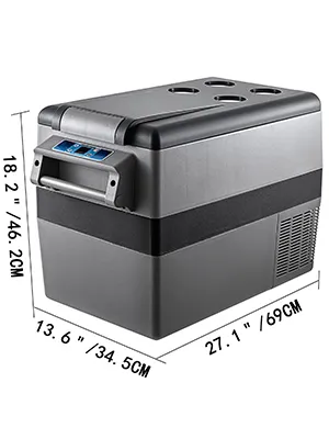 Deze superieure draagbare koelkast voor kleine auto's heeft een beknopt uiterlijk met een eenvoudig kleurenassortiment van zwart en grijs. Eenvoudig te bedienen scherm met digitaal bedieningspaneel, compact, stabiel en zeer efficiënt ontwerp en de twee stroomkabels, maken het ideaal voor gebruik in koelkasten binnen en buiten. Het is de perfecte keuze om te genieten van vers eten en koude dranken. Koop het nu! Door de eenvoudige en gemakkelijke applicatie kunt u van het leven genieten. Laat de koelkast voor de lange levensduur van de koelkast maximaal 6 uur staan voordat u hem gebruikt.
