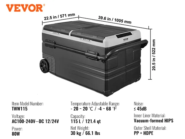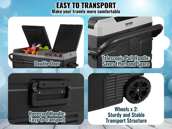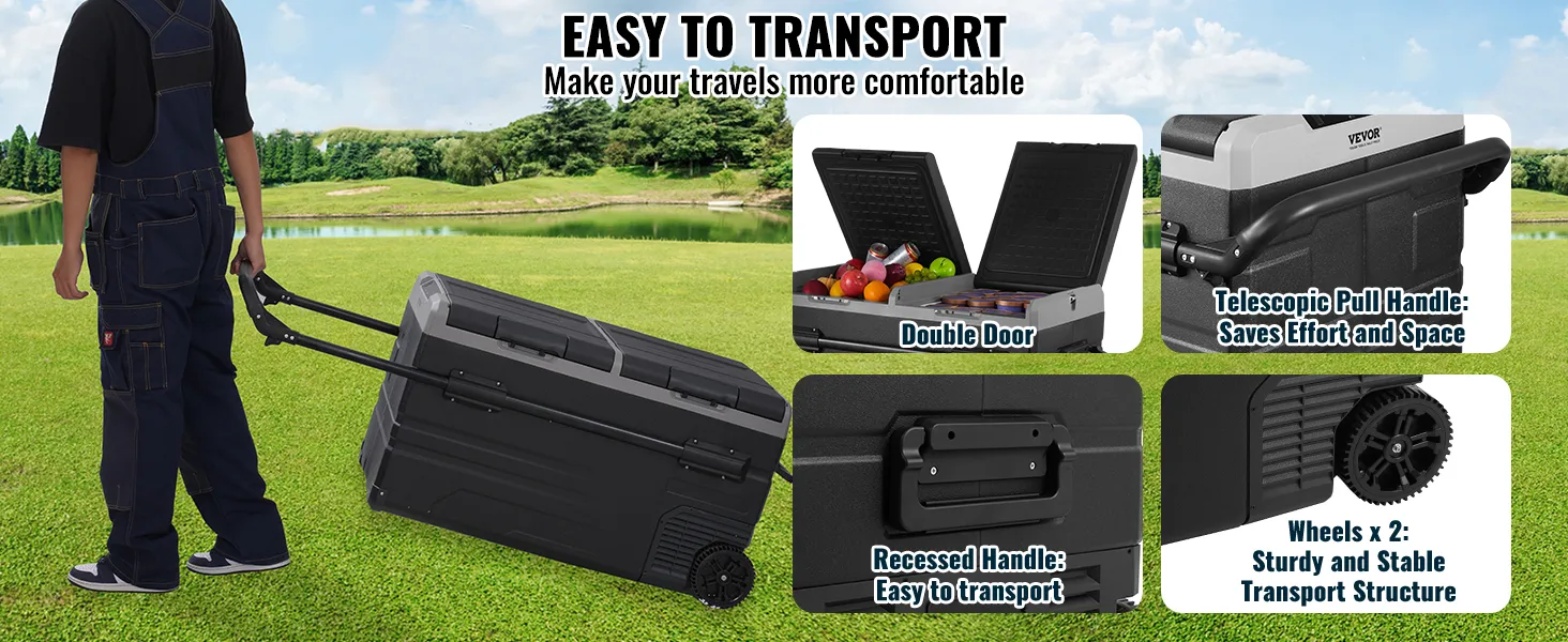 Dual Use for Home/Car: Designed with sturdy wheels and a telescopic handle for effortless and stable transportation. Additionally, the car fridge is equipped with 110/240V AC and 12/24V DC adapters, making it suitable for use at home, on yachts, RVs, cars, trucks, and vans.